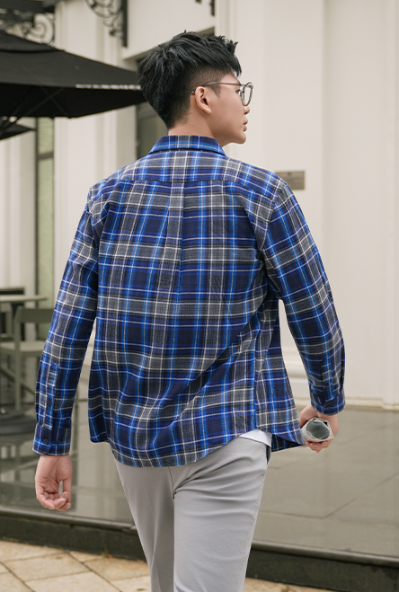 Kiểu dáng: Sơ mi dài tay kẻ dáng suông vạt lượn