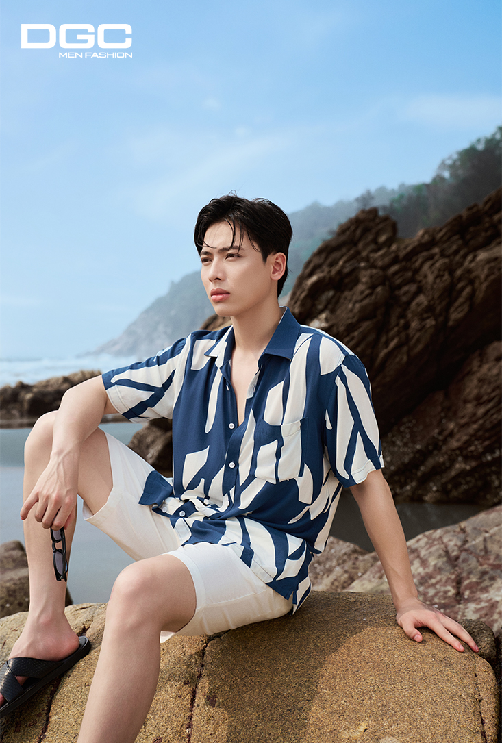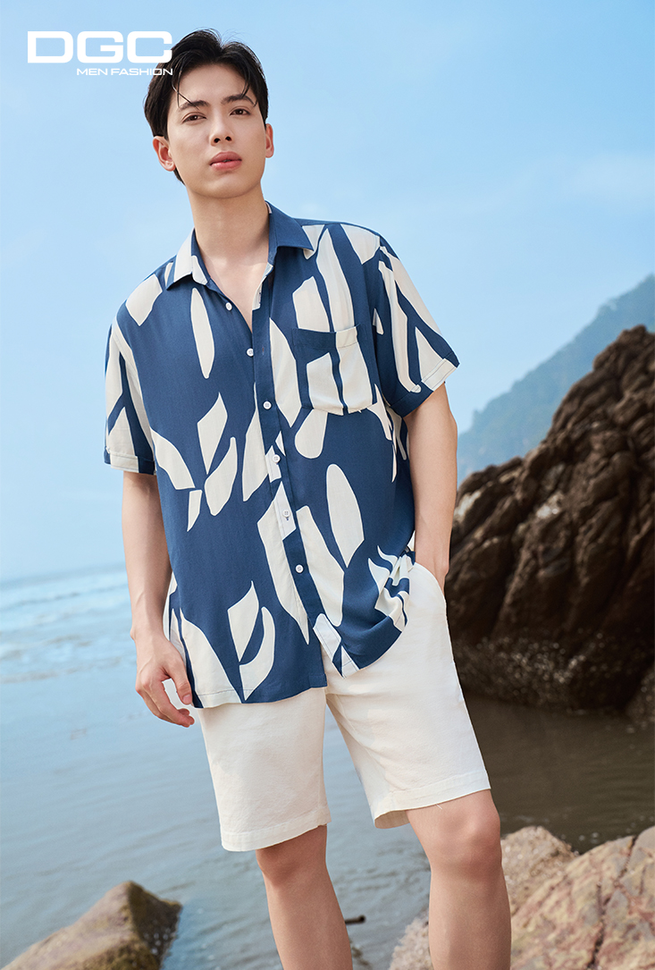 - Kiểu dáng: Sơ mi ngắn tay họa tiết dáng suông vạt bằng, tay áo lơ vê, nẹp áo rời, túi ngực trái
