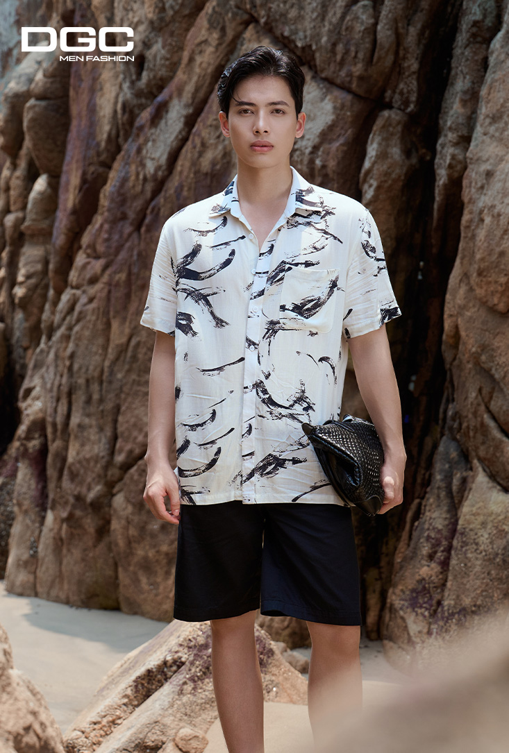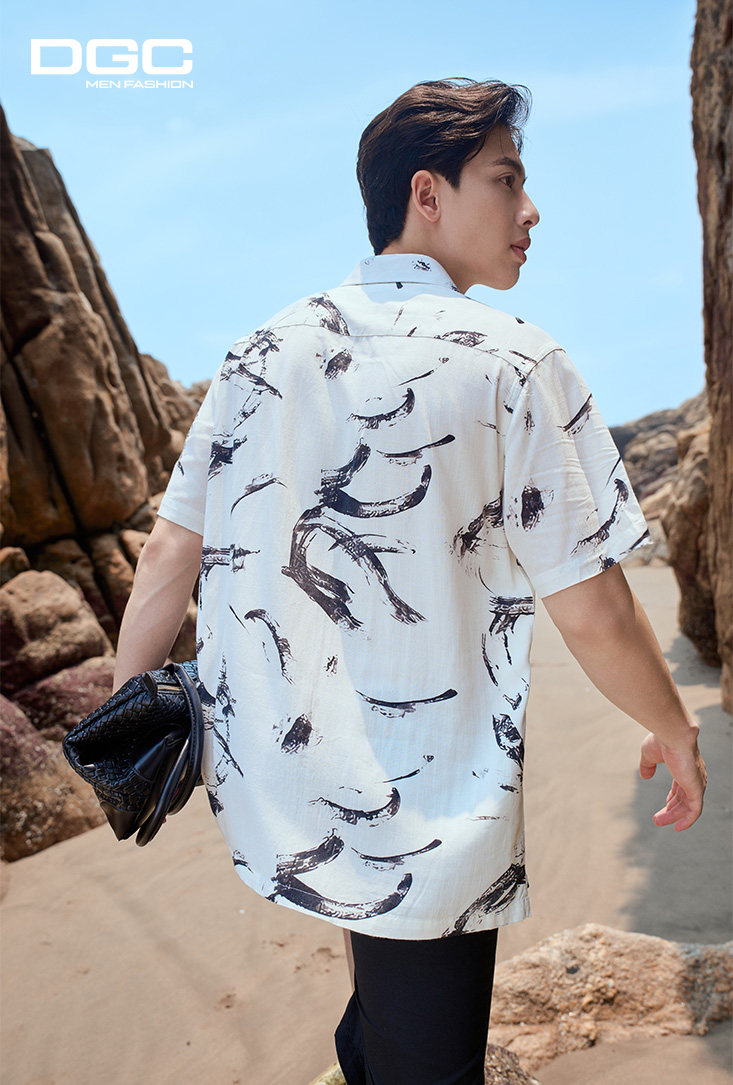 - Kiểu dáng: Sơ mi ngắn tay họa tiết dáng suông vạt bằng tay áo thường, nẹp liền