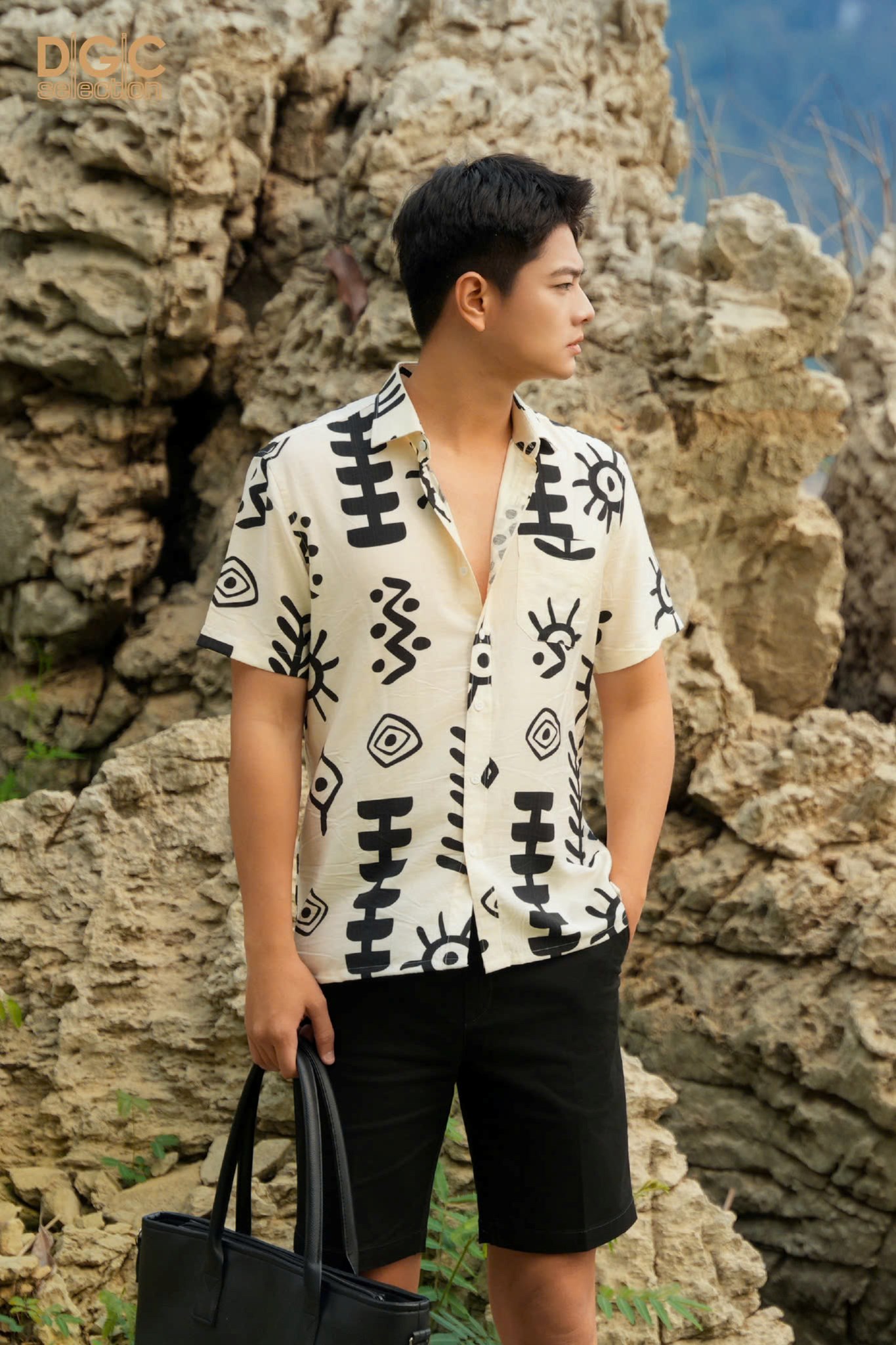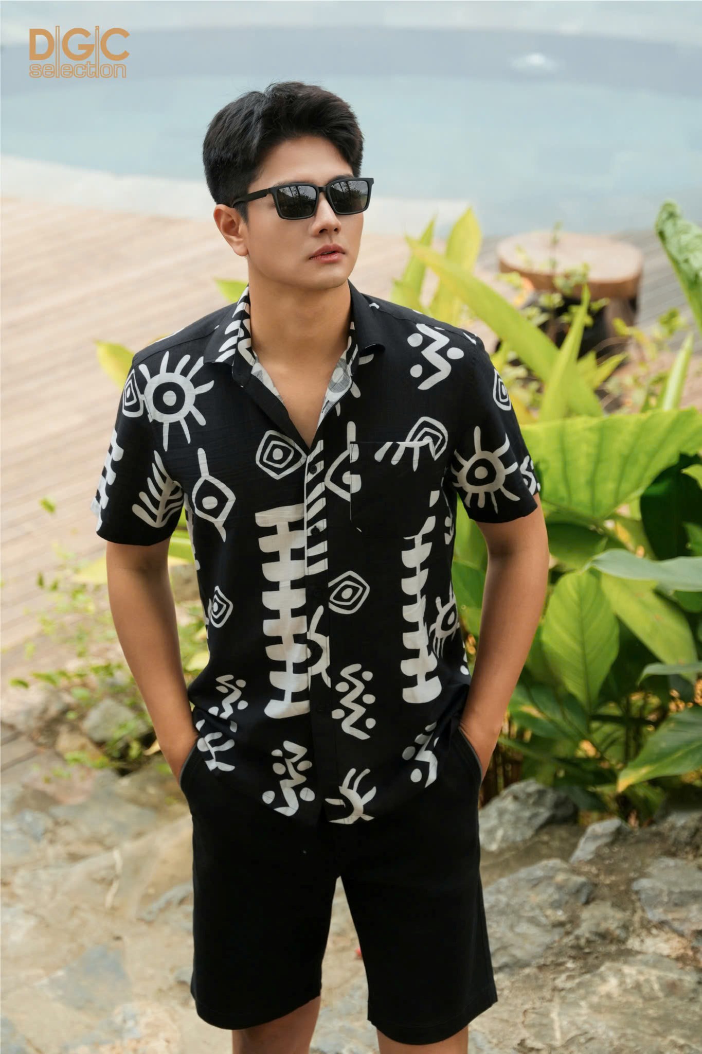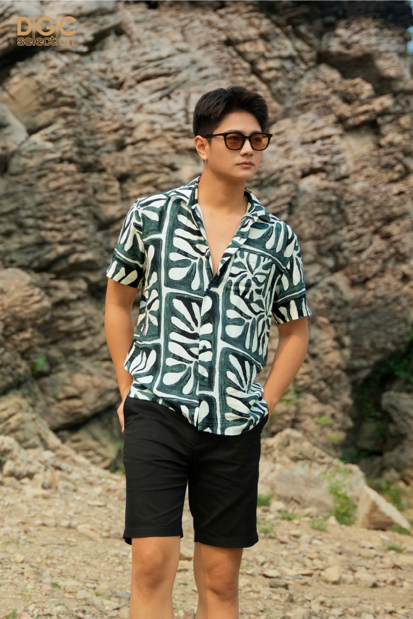 Tập trung vào áo sơ mi ngắn tay relaxed-fit, dễ phối nhưng vẫn đủ cá tính để không bị nhạt. Họa tiết tropical bản to: rõ, mạnh, gãy gọn. Chất liệu rayon – nylon thô mộc: nhẹ, thoáng, không cần là. Bảng màu thiên nhiên: xanh rừng, beige, nâu cháy, navy – giúp bạn nổi bật theo cách tự nhiên nhất.