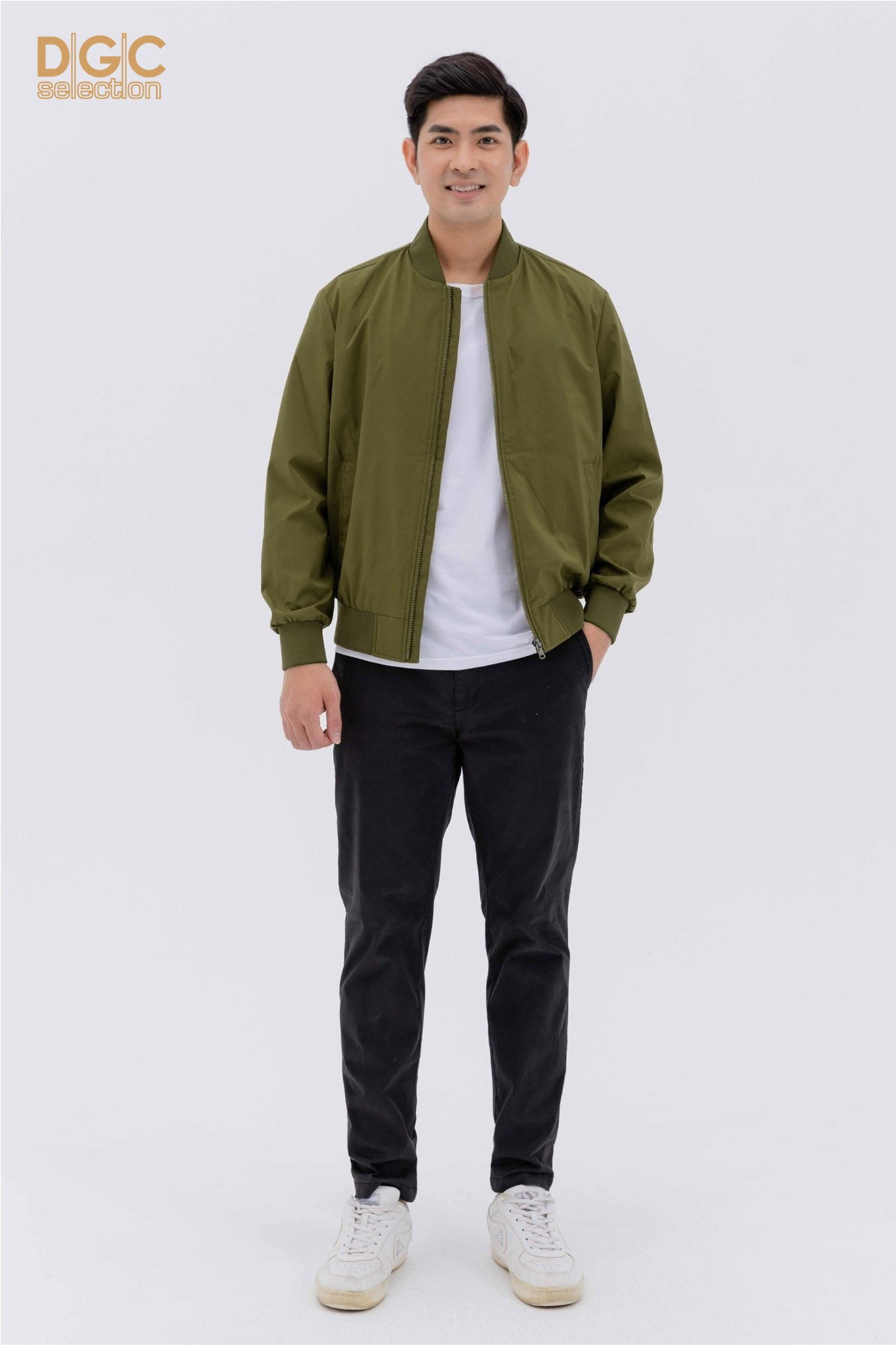 - Kiểu dáng: Áo bomber 2 lớp, túi cơi chéo 2 bên có cúc dập ẩn. Áo khoác ngoài với kiểu dáng thời trang cùng màu sắc nam tính, dễ dàng phối hợp với nhiều trang phục khác nhau mang đến sự trẻ trung, năng động cho người mặc.