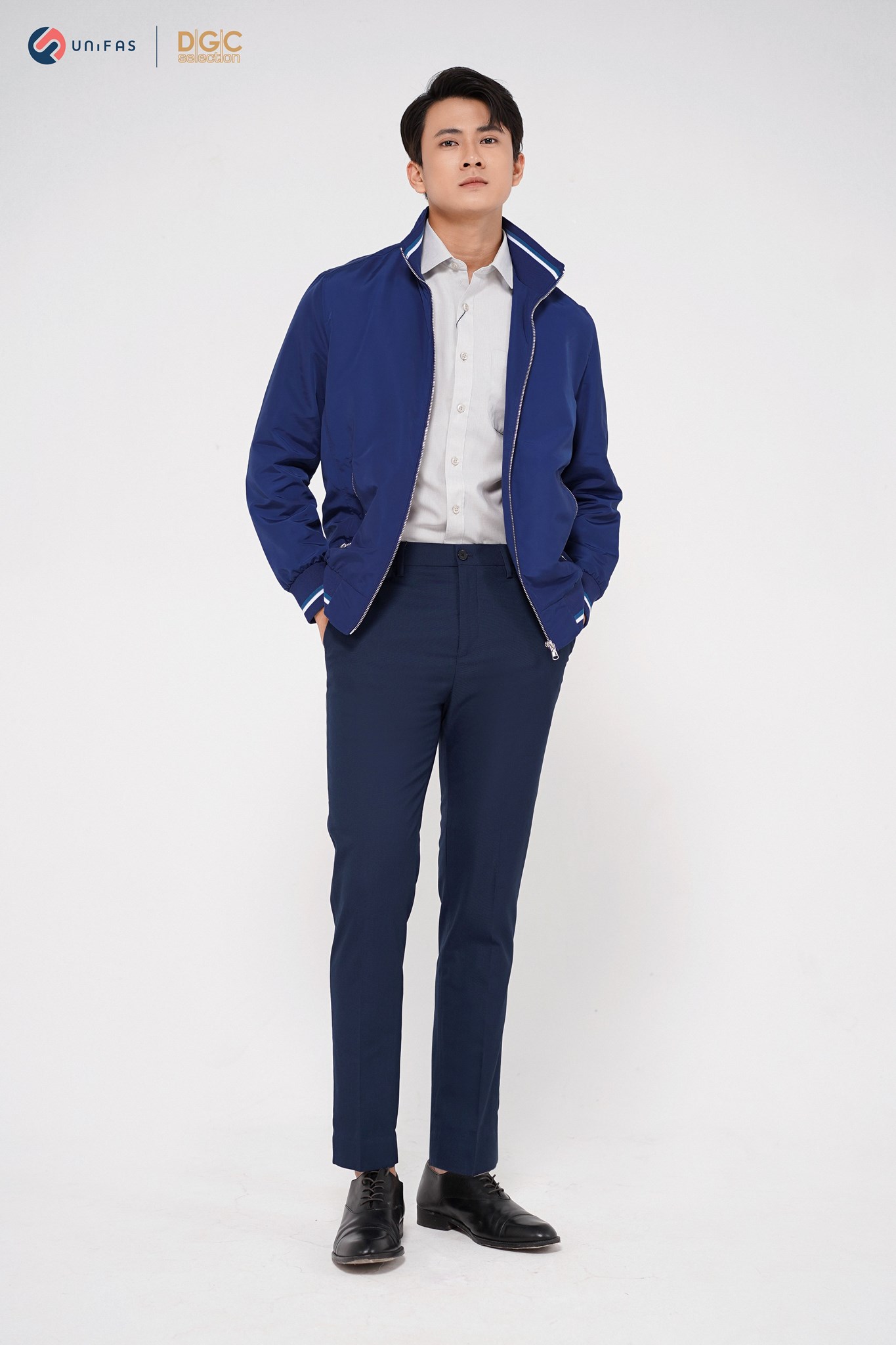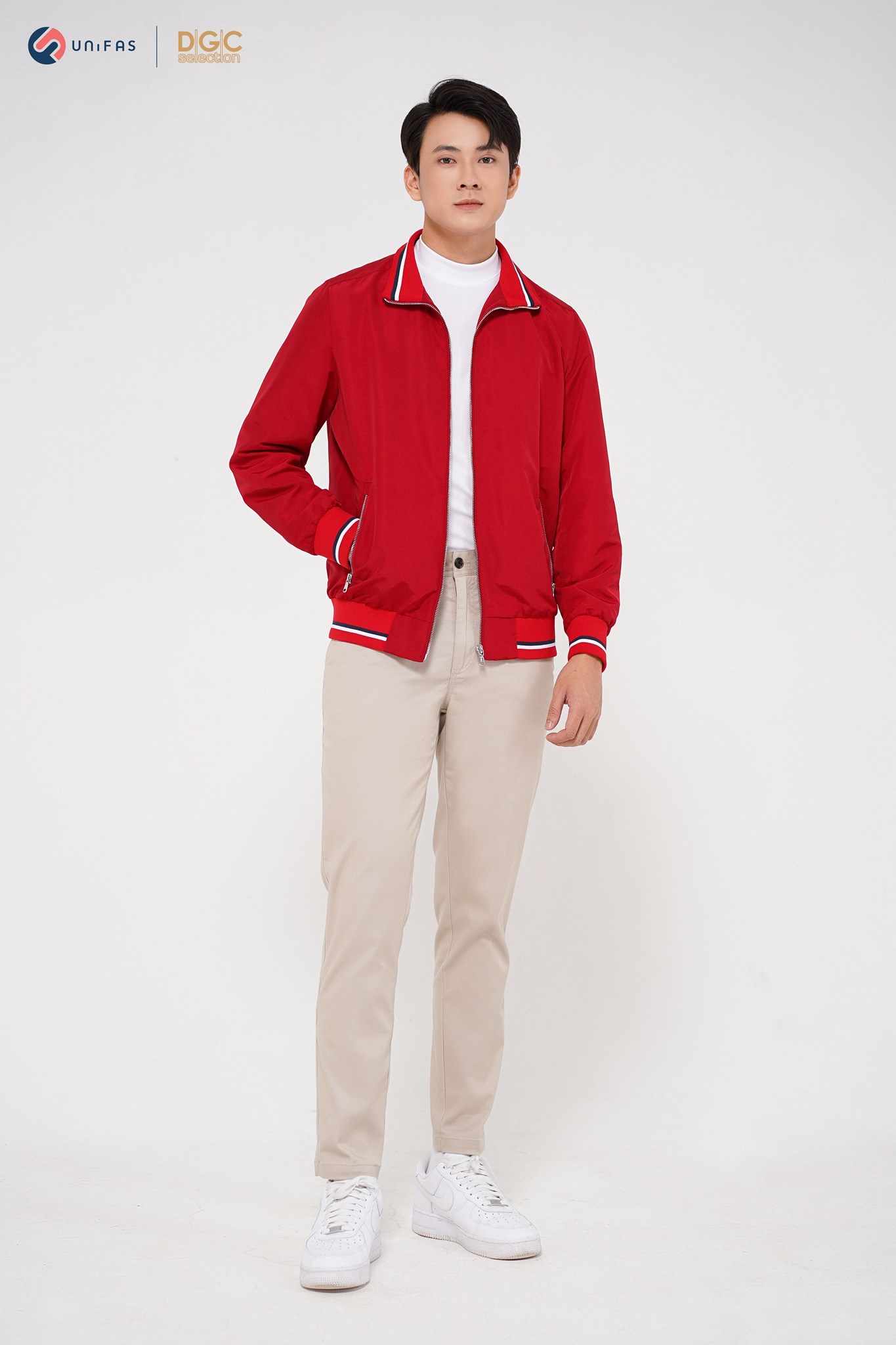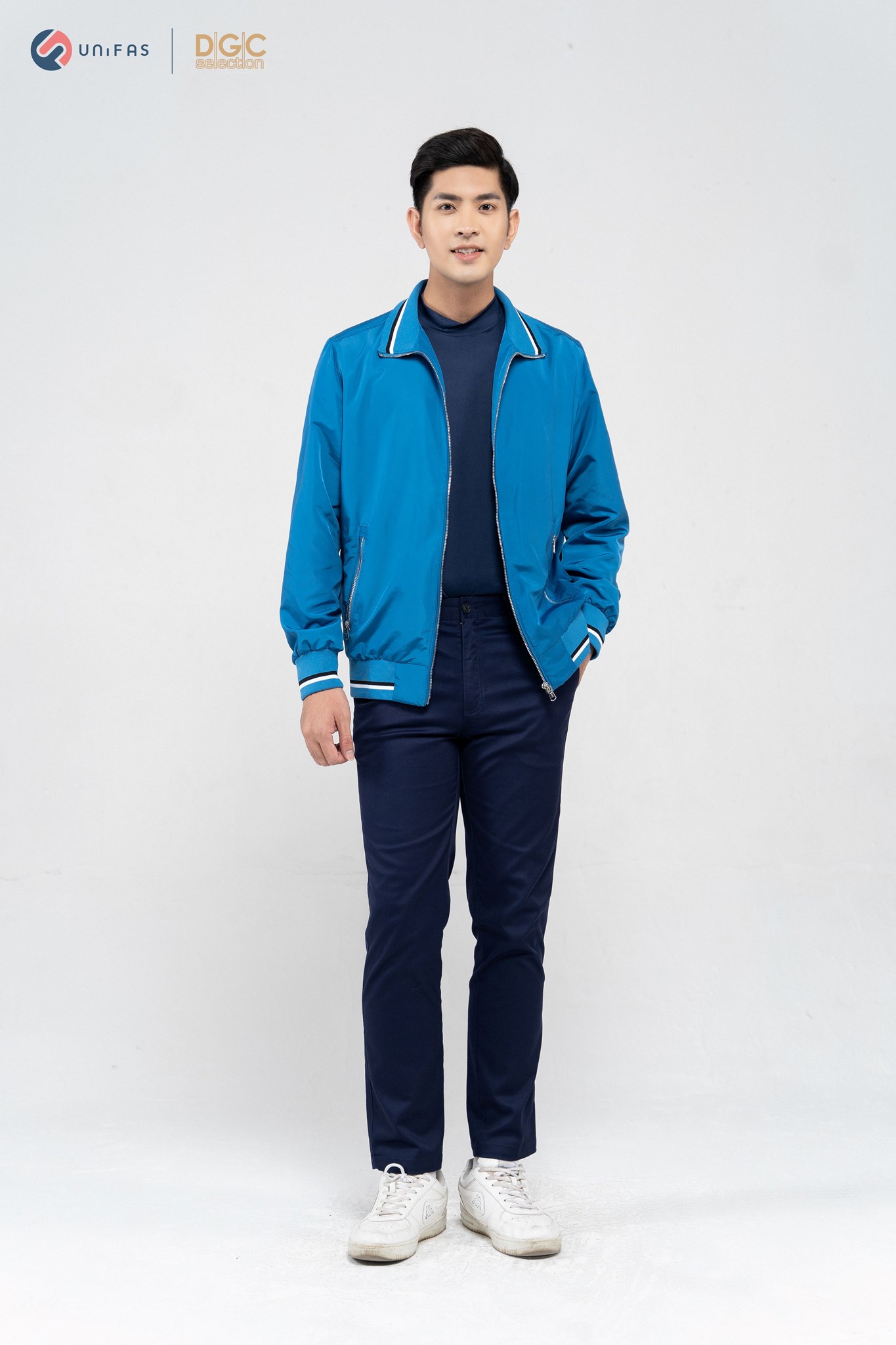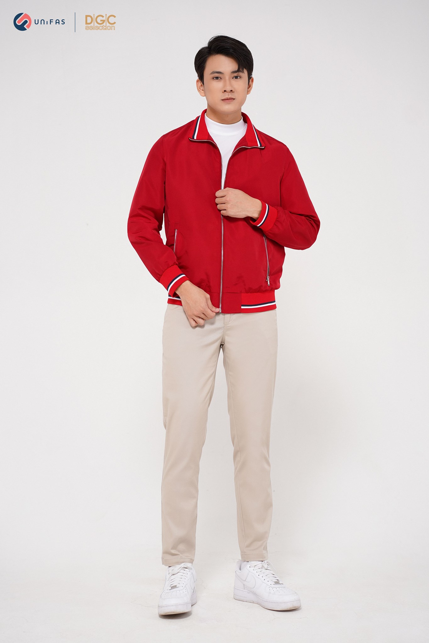 - Kiểu dáng: Áo Jacket cổ đứng 6cm bo kẻ phối lót trong, túi chéo kéo khóa. Áo khoác ngoài với kiểu dáng thời trang cùng màu sắc nam tính, dễ dàng phối hợp với nhiều trang phục khác nhau mang đến sự trẻ trung, năng động cho người mặc.