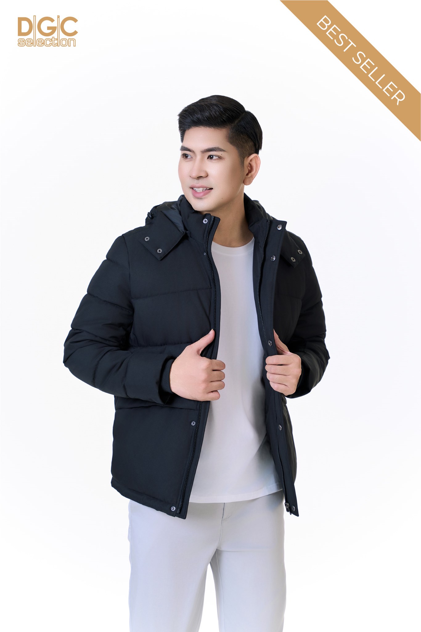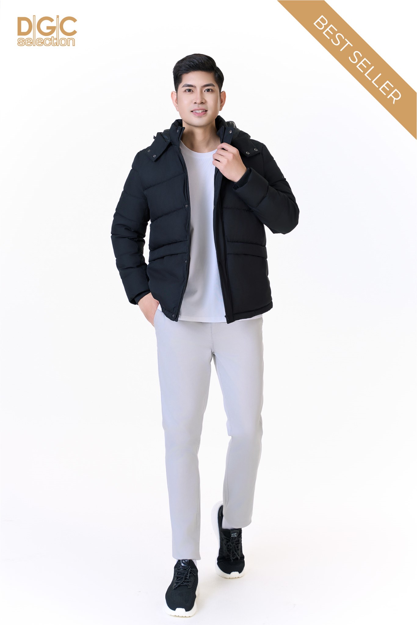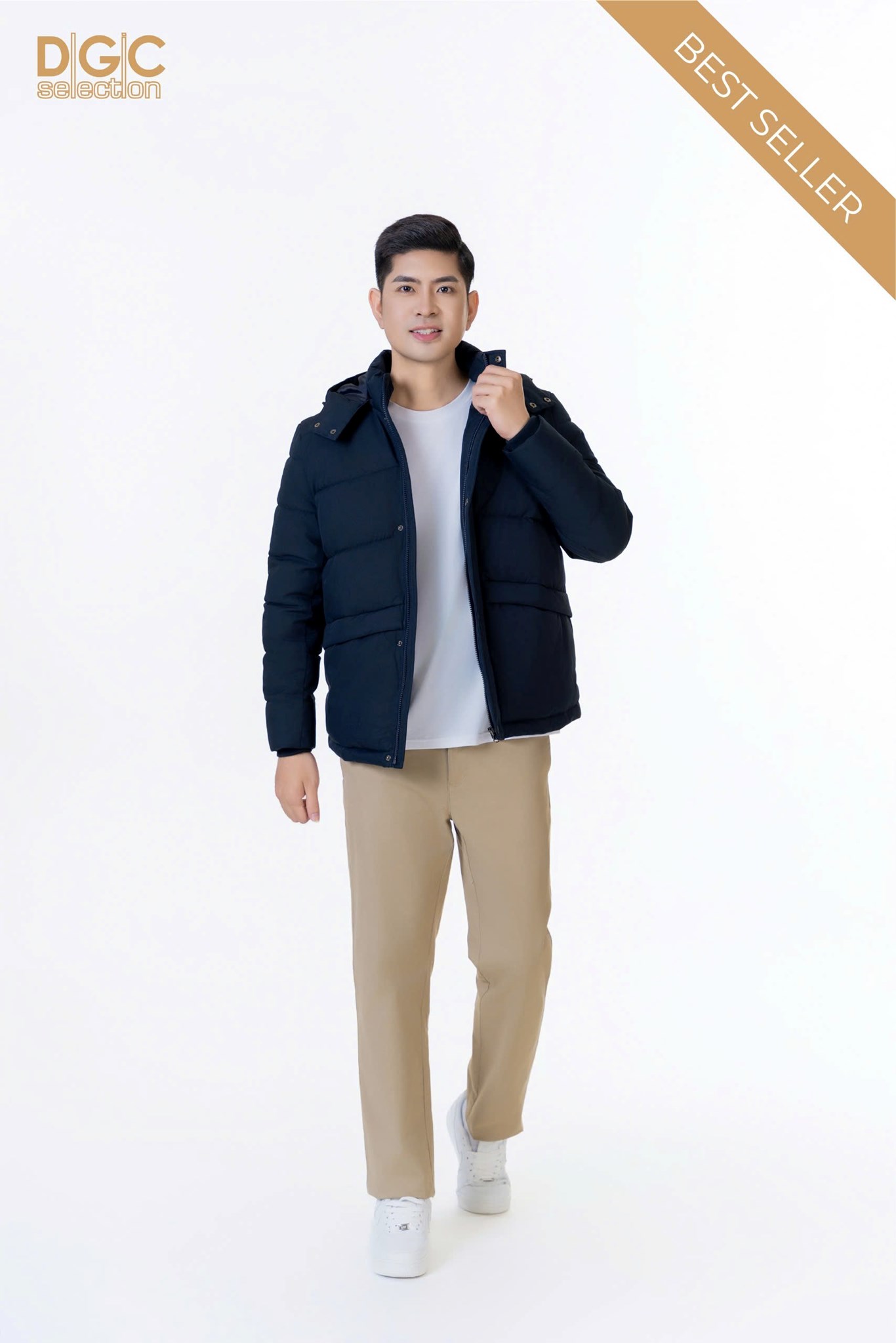 - Kiểu dáng: Áo jacket 3 lớp dáng ngắn, mũ rời, có nẹp che khóa cúc bấm, túi ngang có khóa, tay có bo len. Áo khoác ngoài với kiểu dáng thời trang cùng màu sắc nam tính, dễ dàng phối hợp với nhiều trang phục khác nhau mang đến sự trẻ trung, năng động cho người mặc.