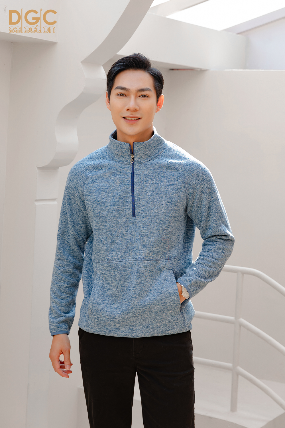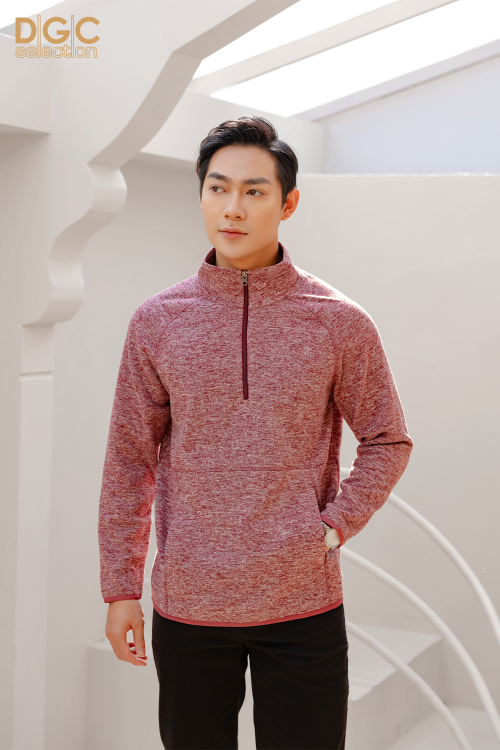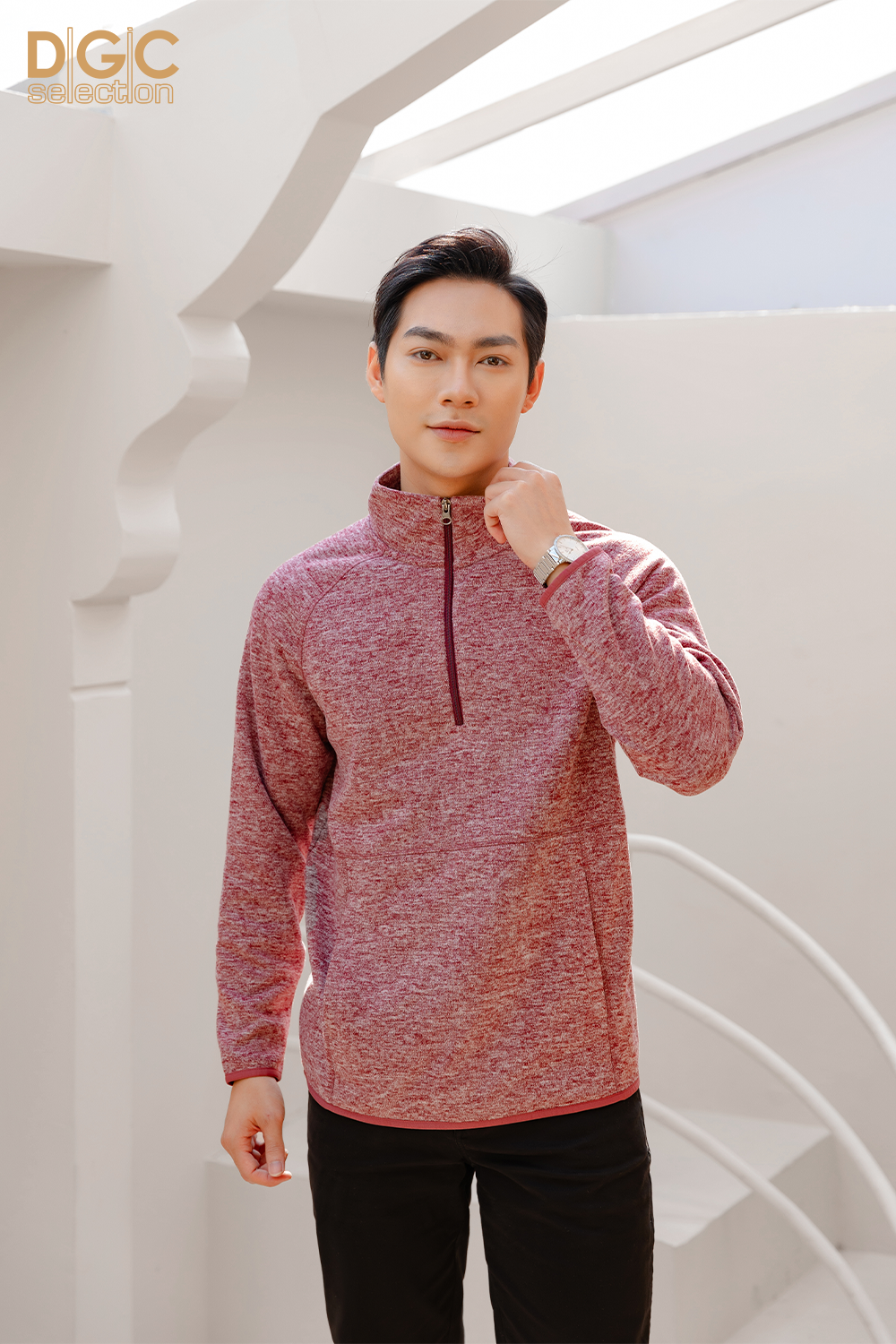 Áo nỉ len cổ đứng DGC với kiểu dáng năng động, phom dáng thoải mái, kết hợp với quần thể thao cùng bộ, đem lại phong thái năng động, tự tin cho người mặc.