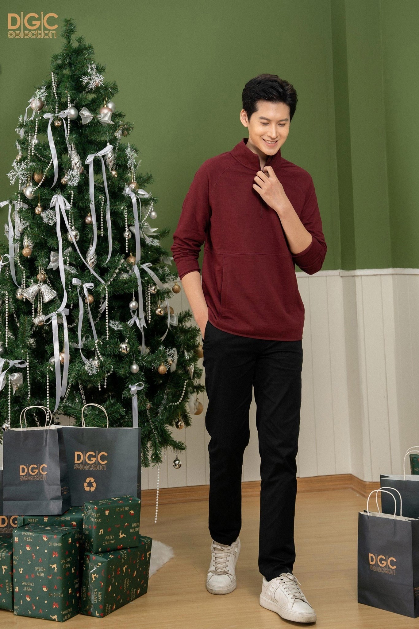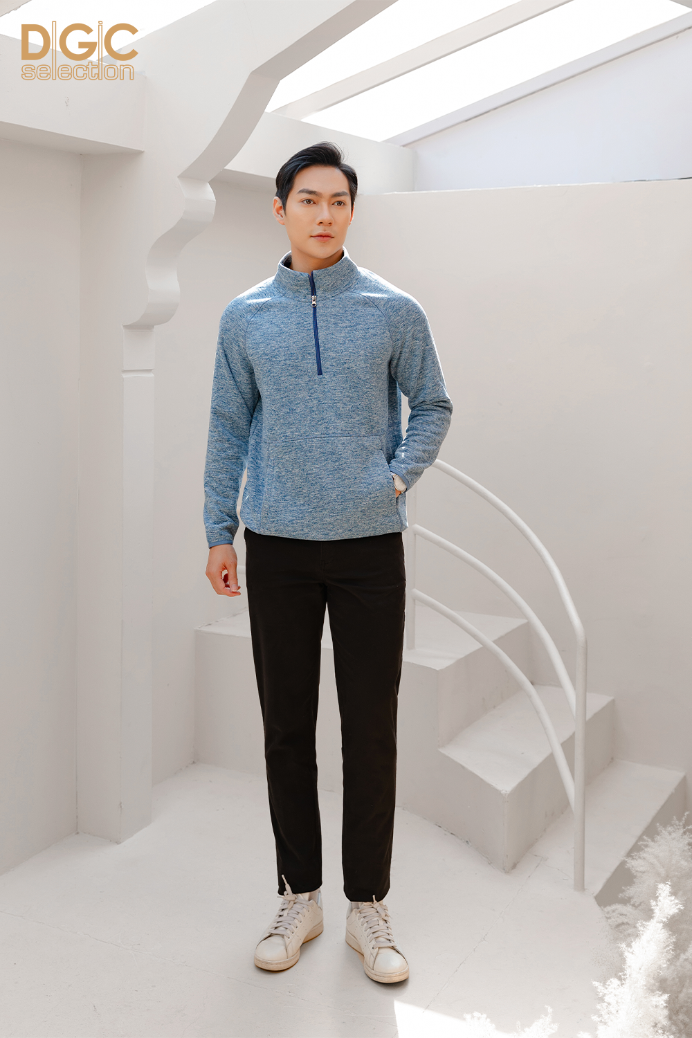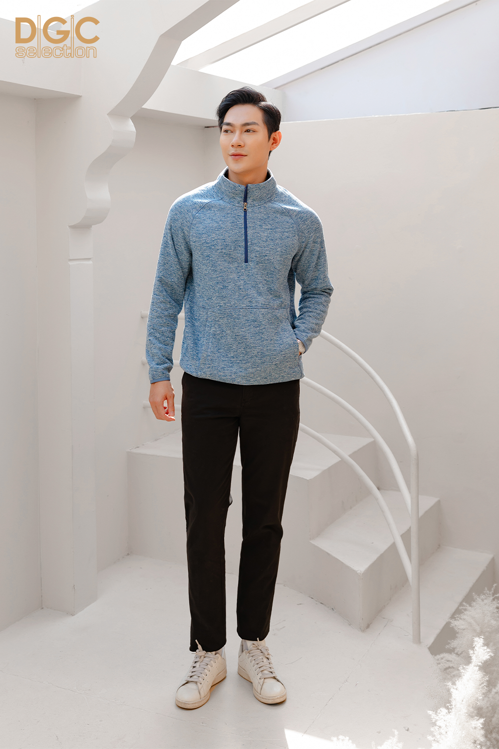 Áo nỉ len cổ đứng DGC với kiểu dáng năng động, phom dáng thoải mái, kết hợp với quần thể thao cùng bộ, đem lại phong thái năng động, tự tin cho người mặc.