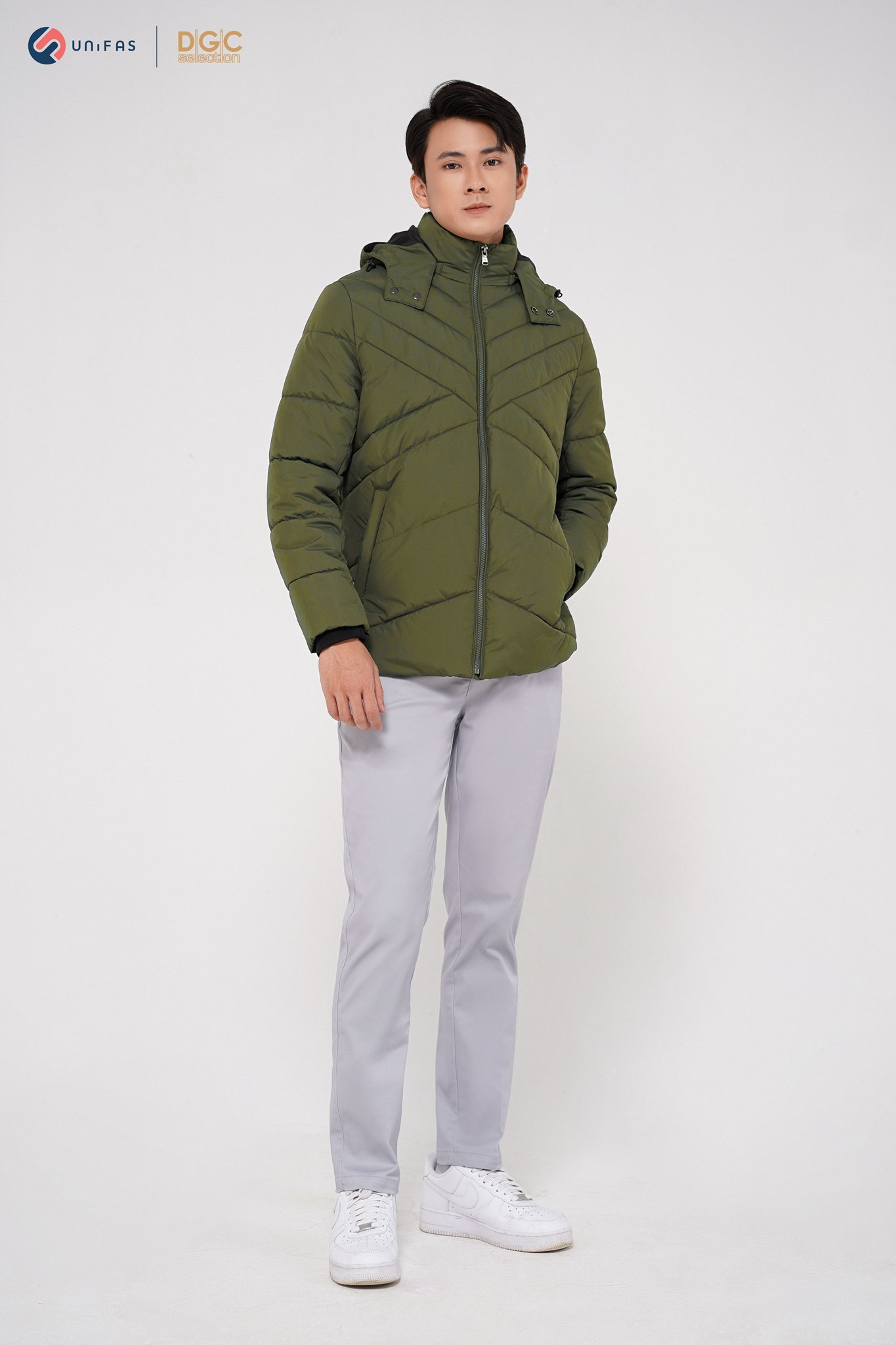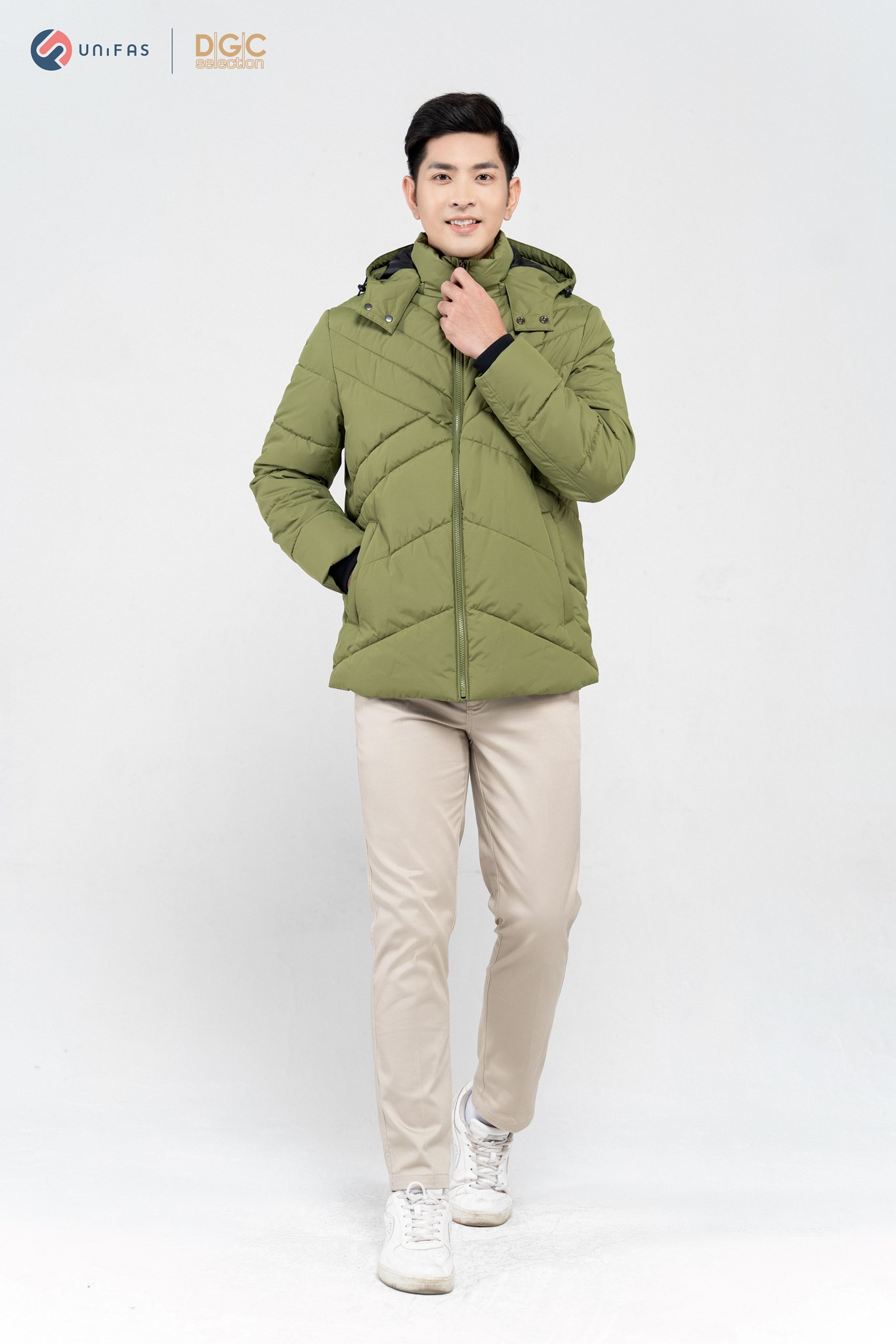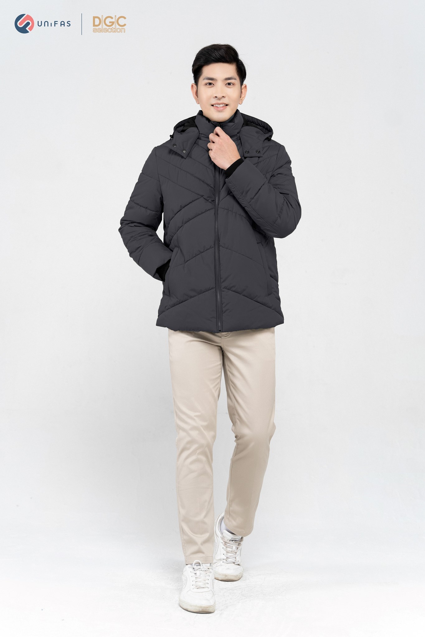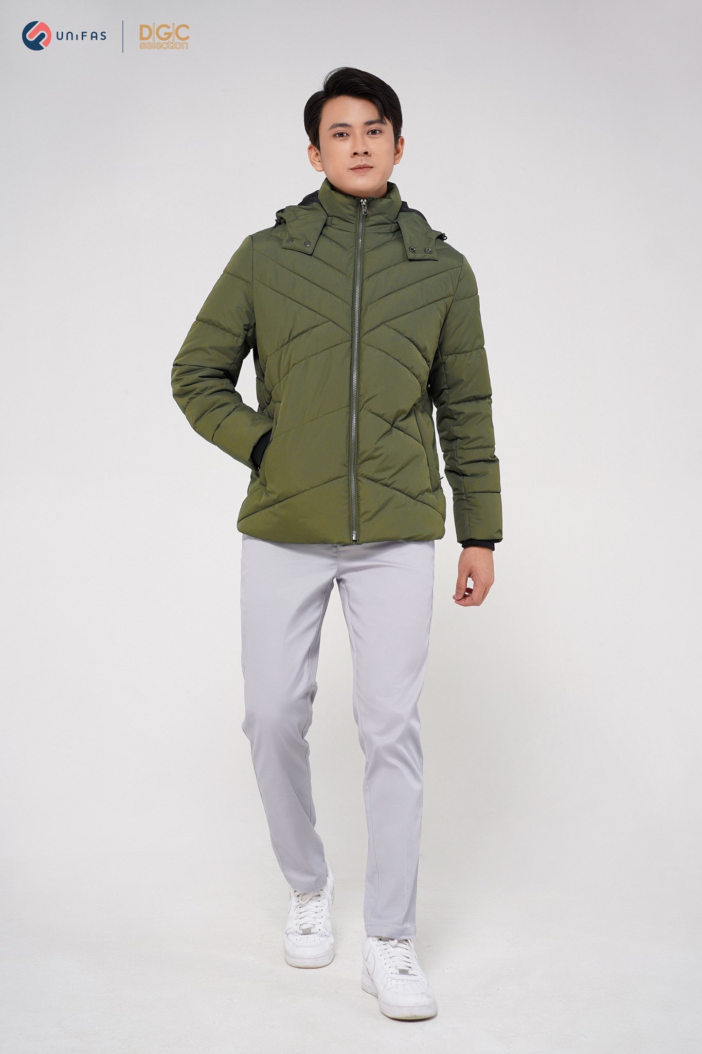 - Kiểu dáng: Áo Jacket 3 lớp chần bông chéo phối lót trong, túi chéo kéo khóa, cửa tay bo len, mũ tháo rời. Áo khoác ngoài với kiểu dáng thời trang cùng màu sắc nam tính, dễ dàng phối hợp với nhiều trang phục khác nhau mang đến sự trẻ trung, năng động cho người mặc.