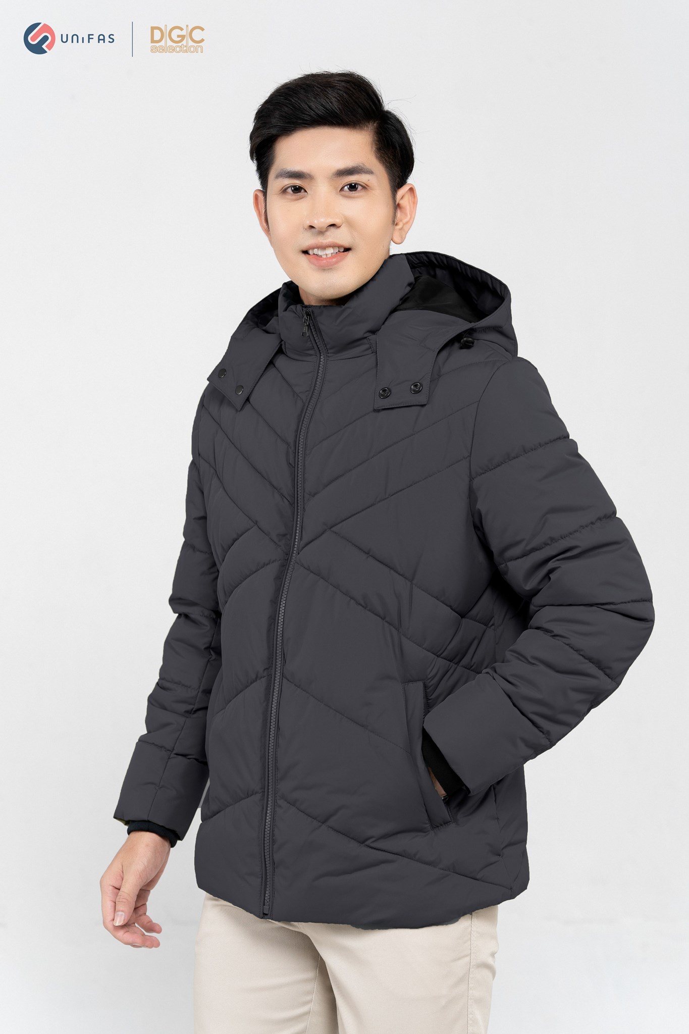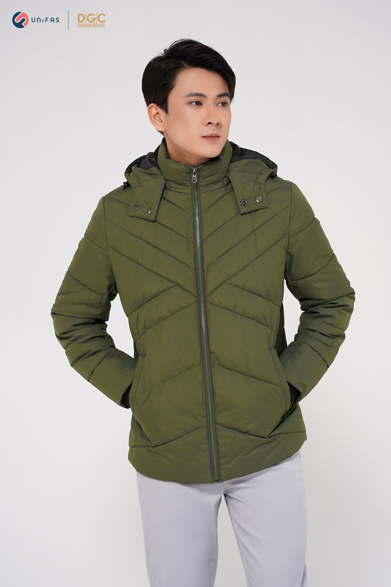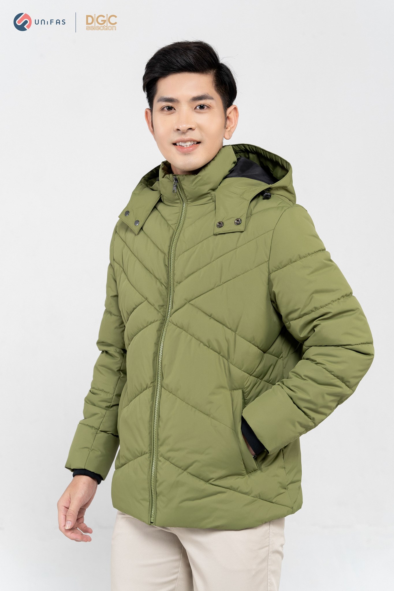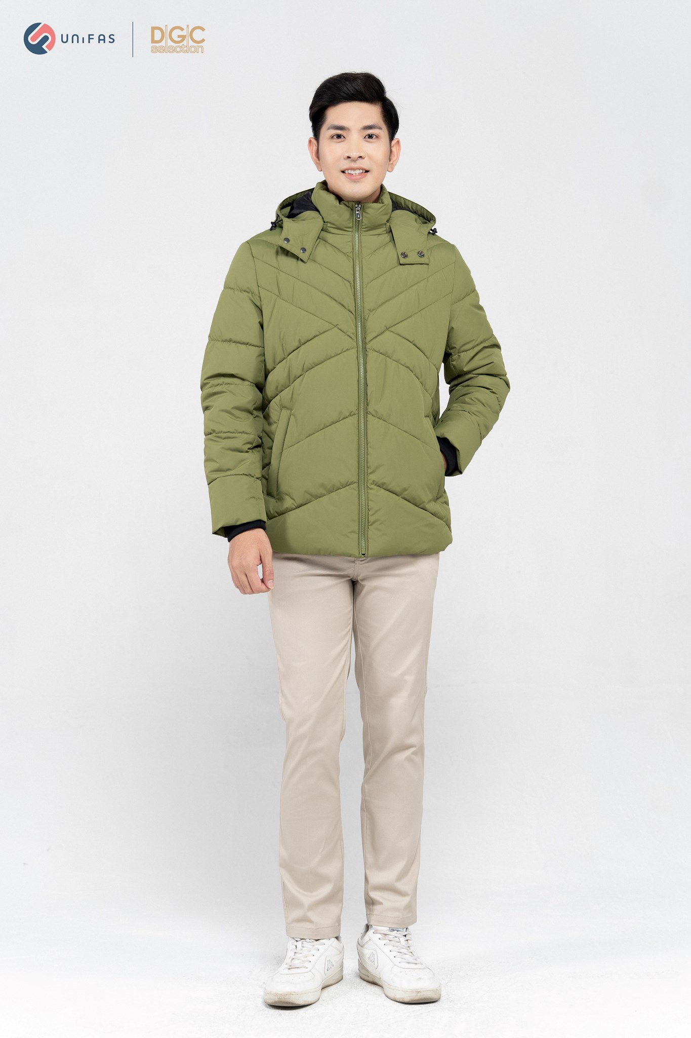 - Kiểu dáng: Áo Jacket 3 lớp chần bông chéo phối lót trong, túi chéo kéo khóa, cửa tay bo len, mũ tháo rời. Áo khoác ngoài với kiểu dáng thời trang cùng màu sắc nam tính, dễ dàng phối hợp với nhiều trang phục khác nhau mang đến sự trẻ trung, năng động cho người mặc.