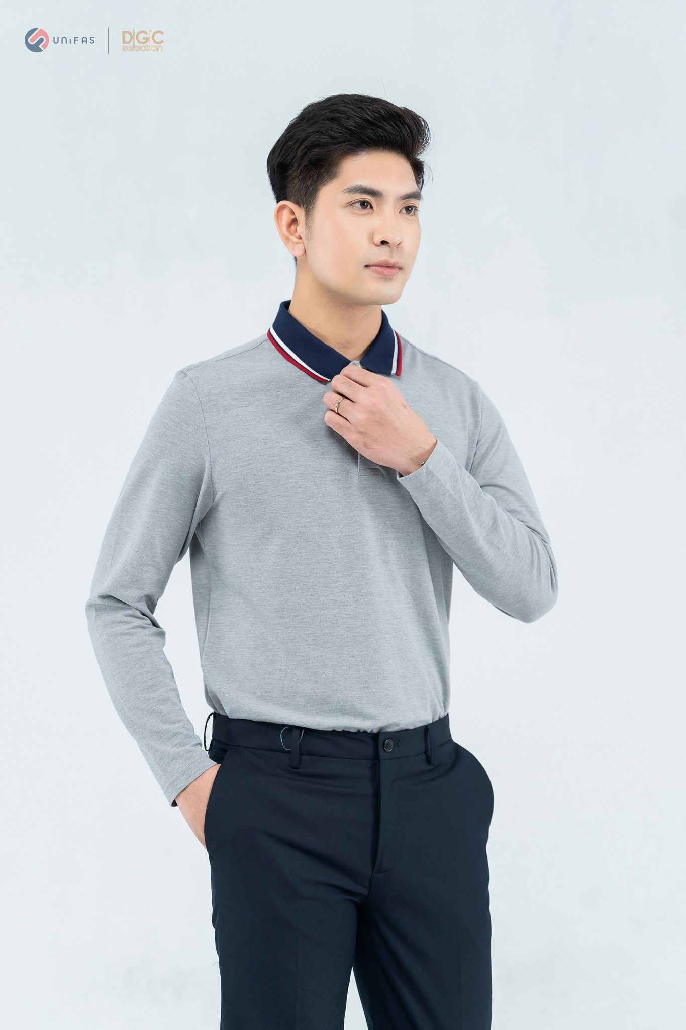 Áo polo dài tay DGCs với kiểu dáng năng động, phom dáng thoải mái, dễ kết hợp với các trang phục khác nhau, đem lại phong thái năng động, tự tin cho người mặc.