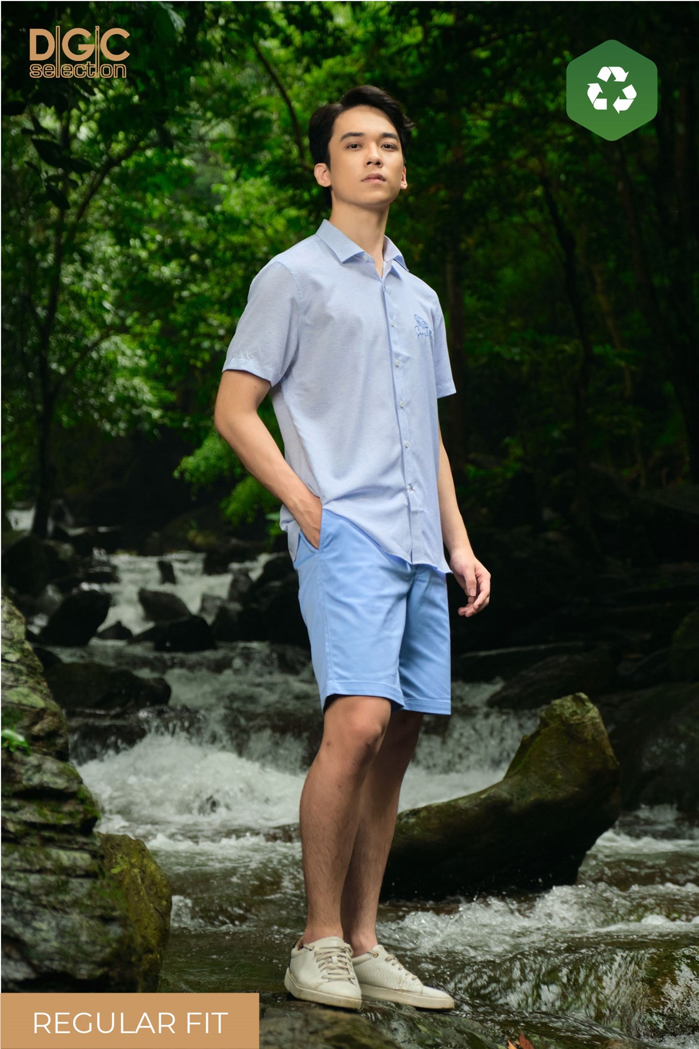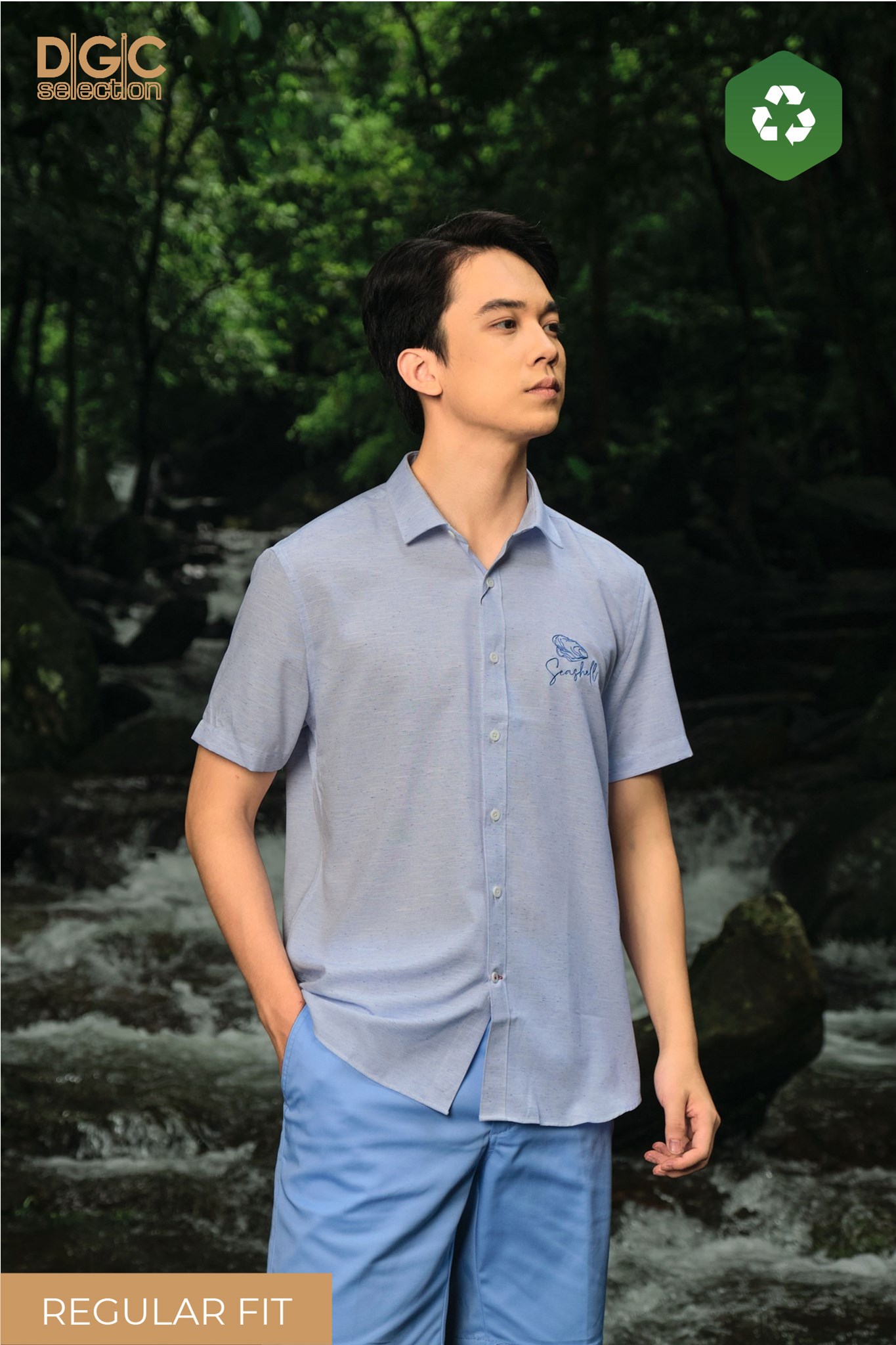 - Kiểu dáng: Sơ mi ngắn tay dáng suông, vạt bằng, cổ Classic, hình thêu ngực trái
