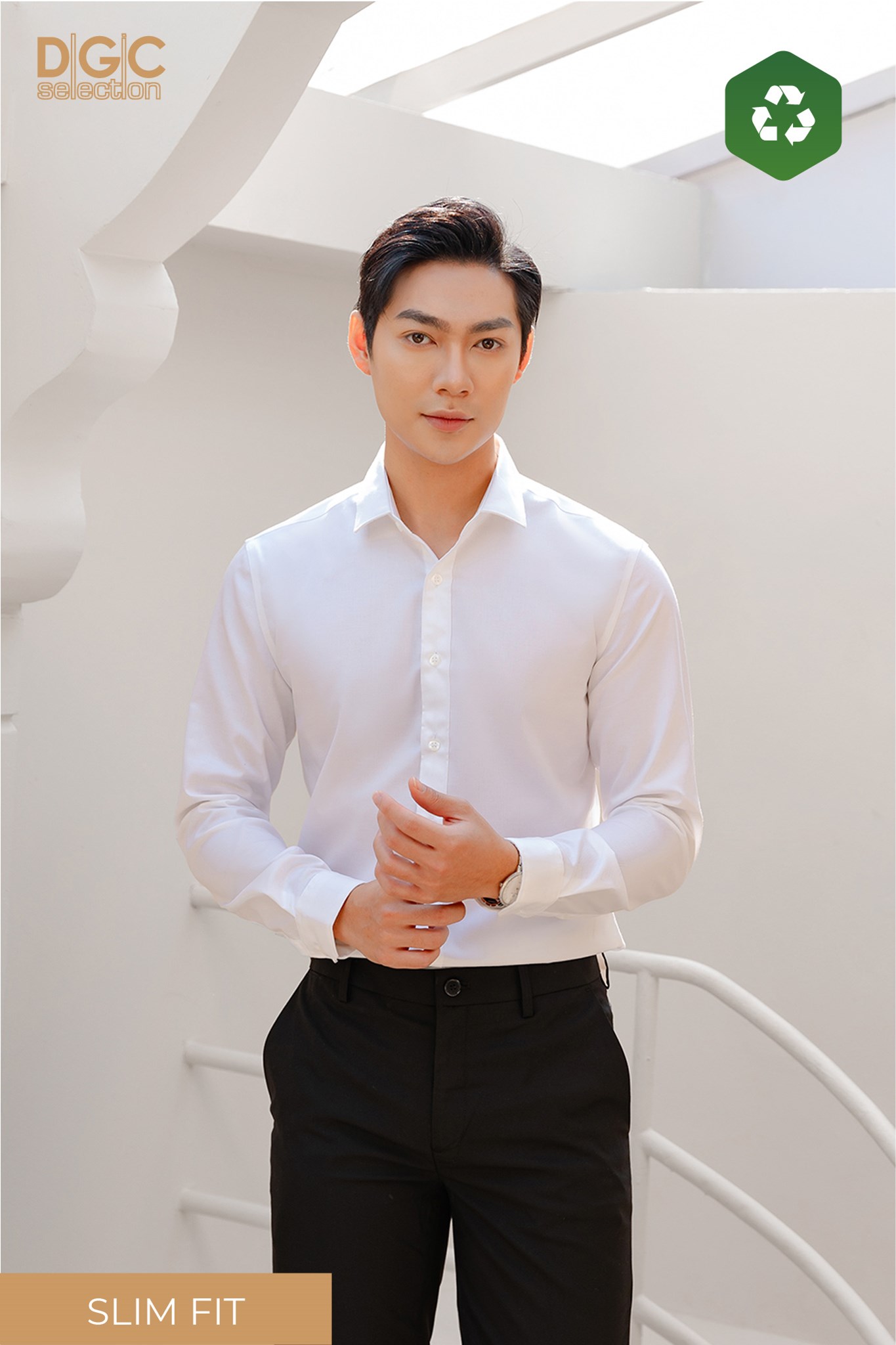 - Kiểu dáng: Sơ mi dài tay dáng ôm (Slim Fit), cổ Narrow.