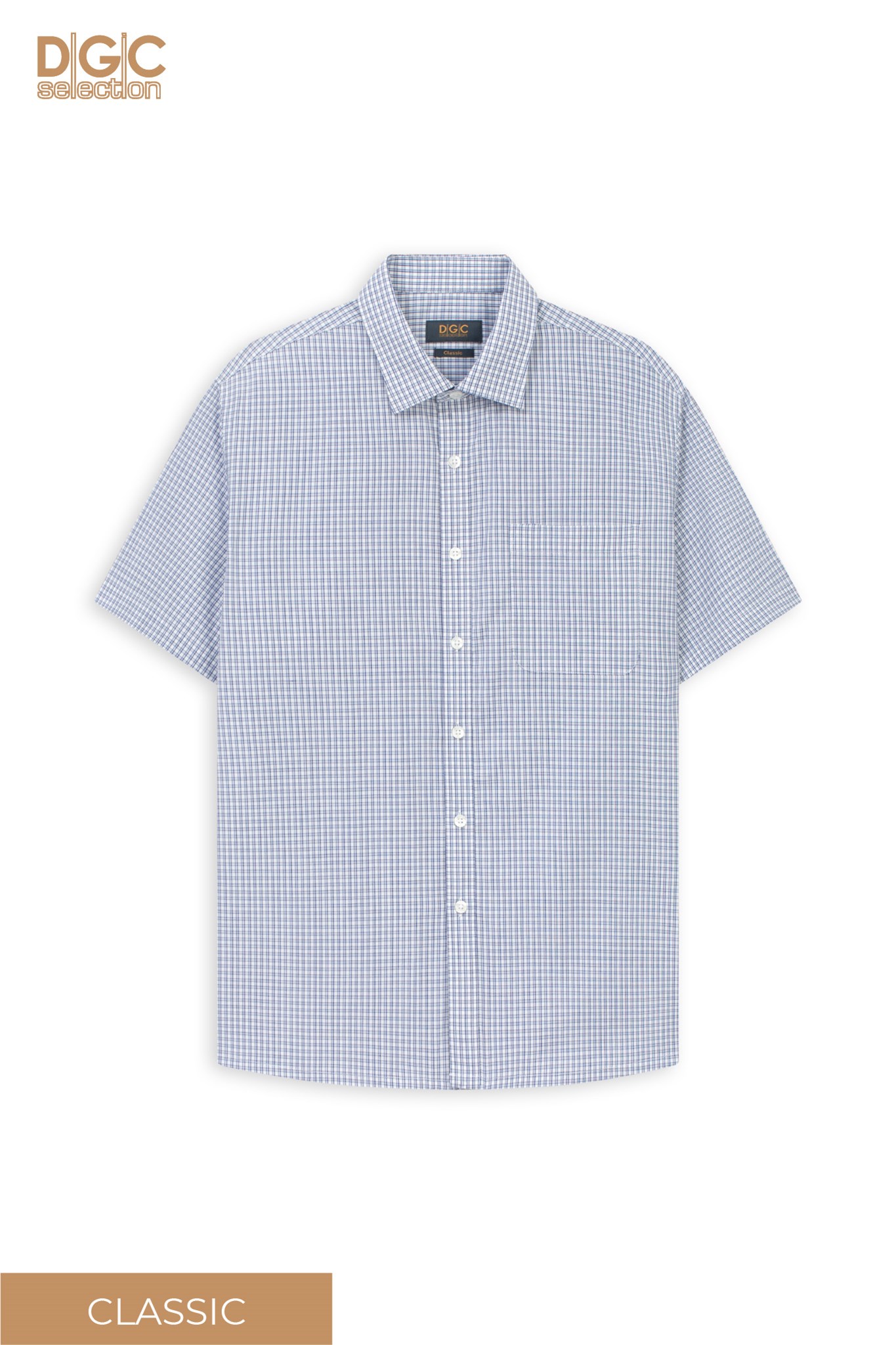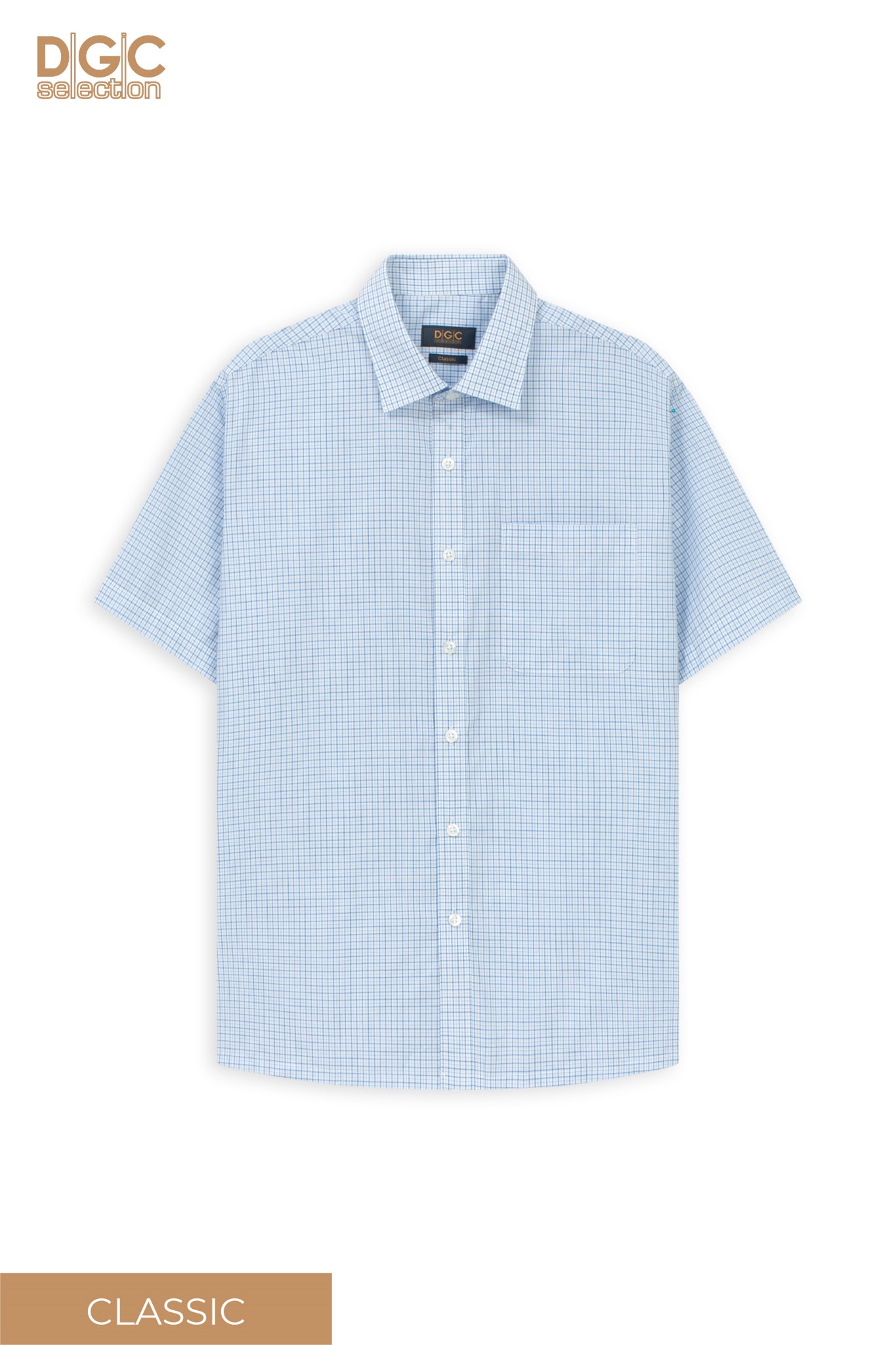 - Kiểu dáng: Sơ mi ngắn tay dáng suông, nẹp áo rời, tay suông, cổ Classic, túi ngực trái.