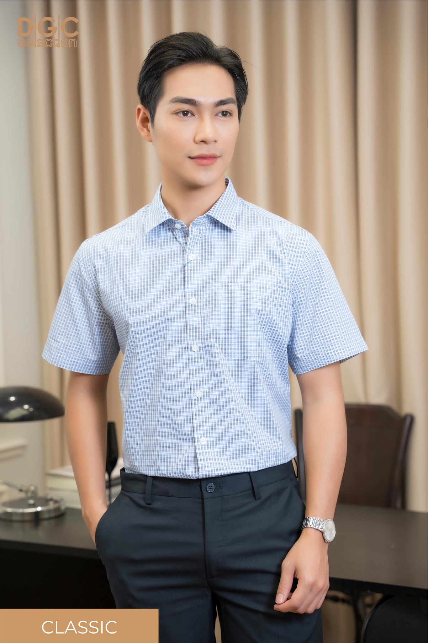 Sơ mi ngắn tay thuộc dòng sơ mi SMART CASUAL của DGCs. Áo đem đến phong cách trẻ trung và hiện đại, dễ dàng kết hợp với nhiều trang phục khác nhau, thích hợp trong nhiều hoàn cảnh.
