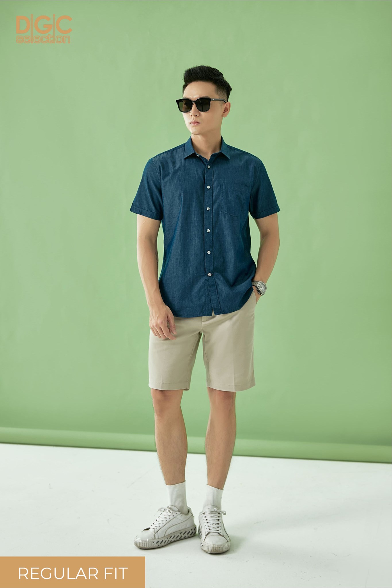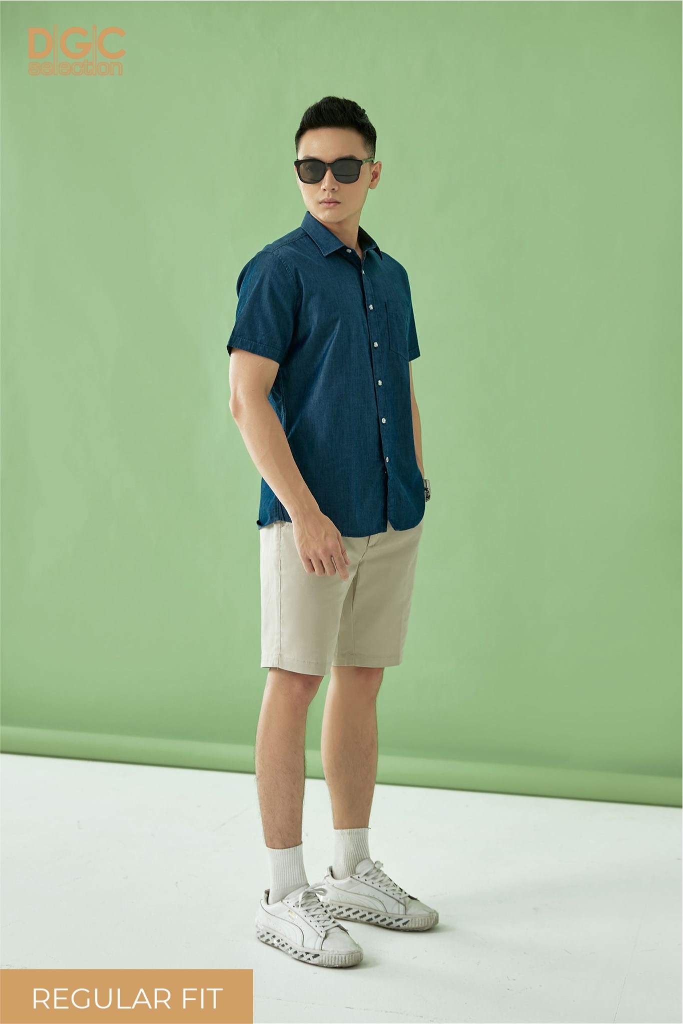 - Kiểu dáng: Sơ mi ngắn tay dáng suông, cổ Classic, túi ngực trái, tay lơ vê