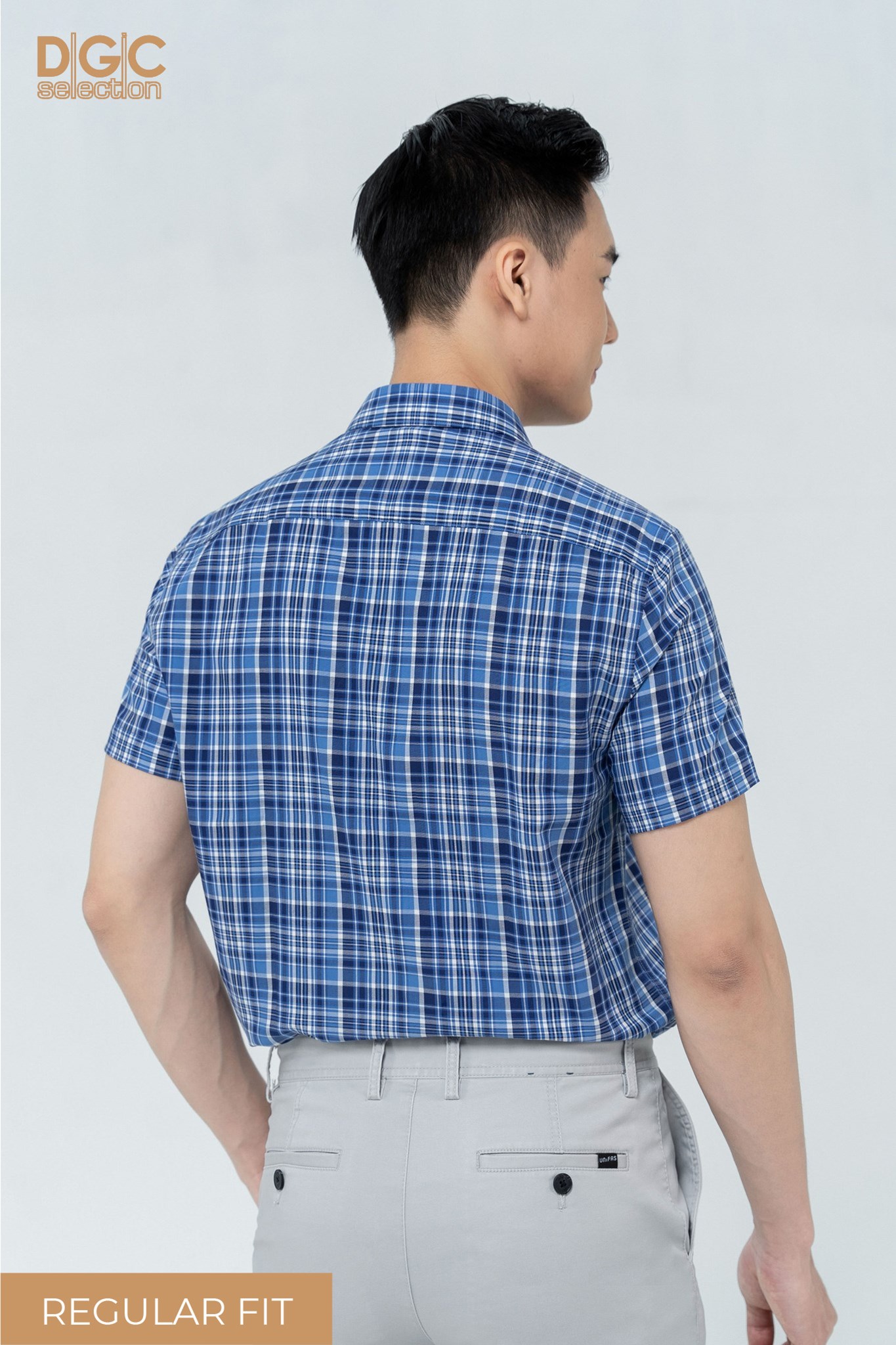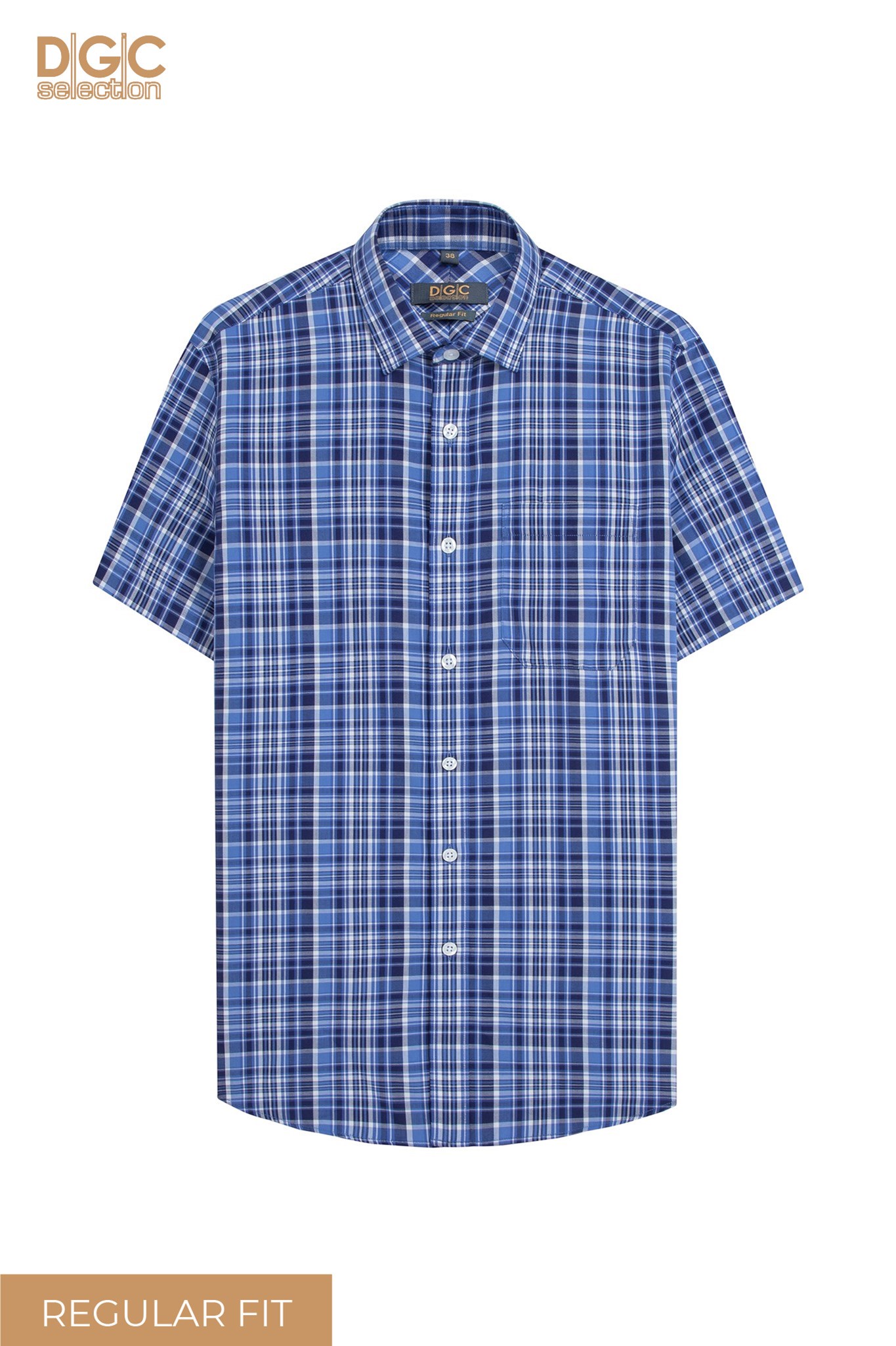 - Kiểu dáng: Sơ mi ngắn tay dáng suông, cổ Classic, tay áo suông, túi áo kẻ trùng thân