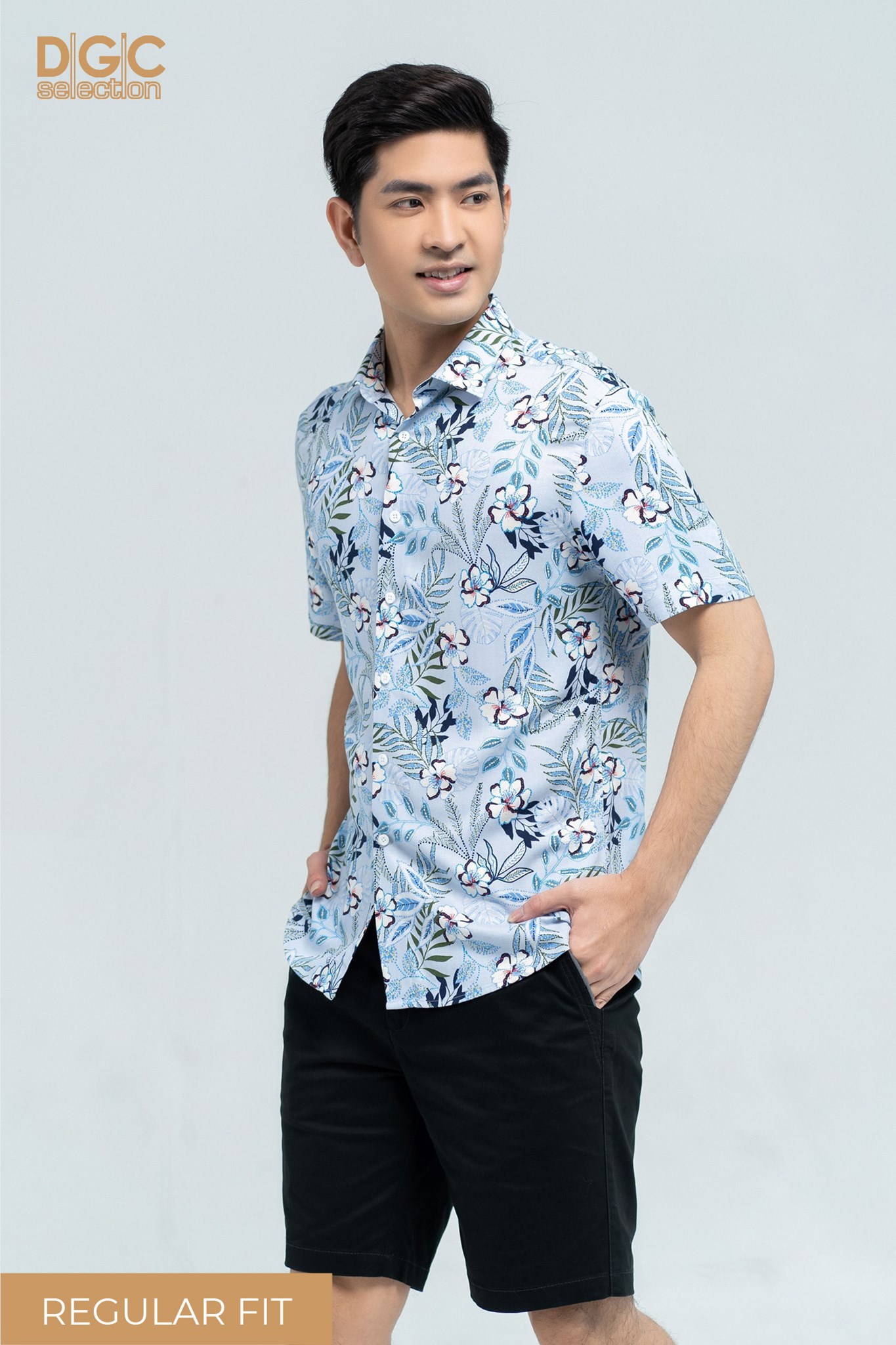 - Kiểu dáng: Sơ mi ngắn tay họa tiết dáng suông, tay áo suông