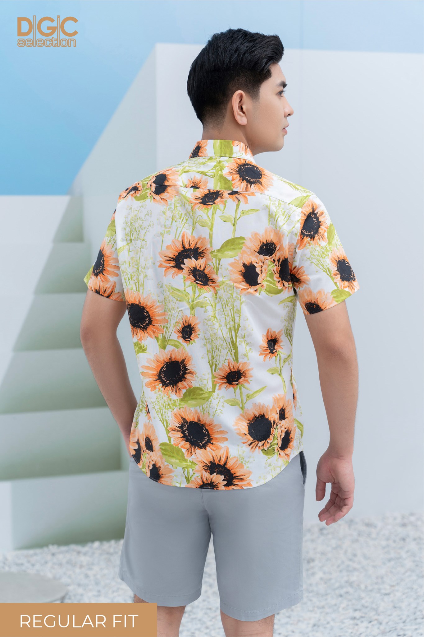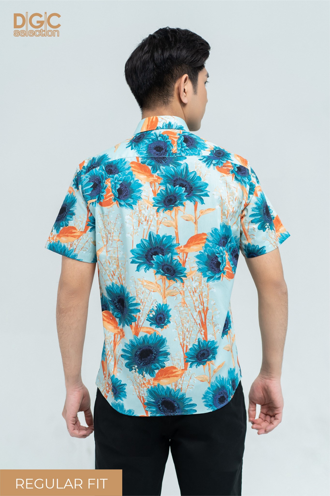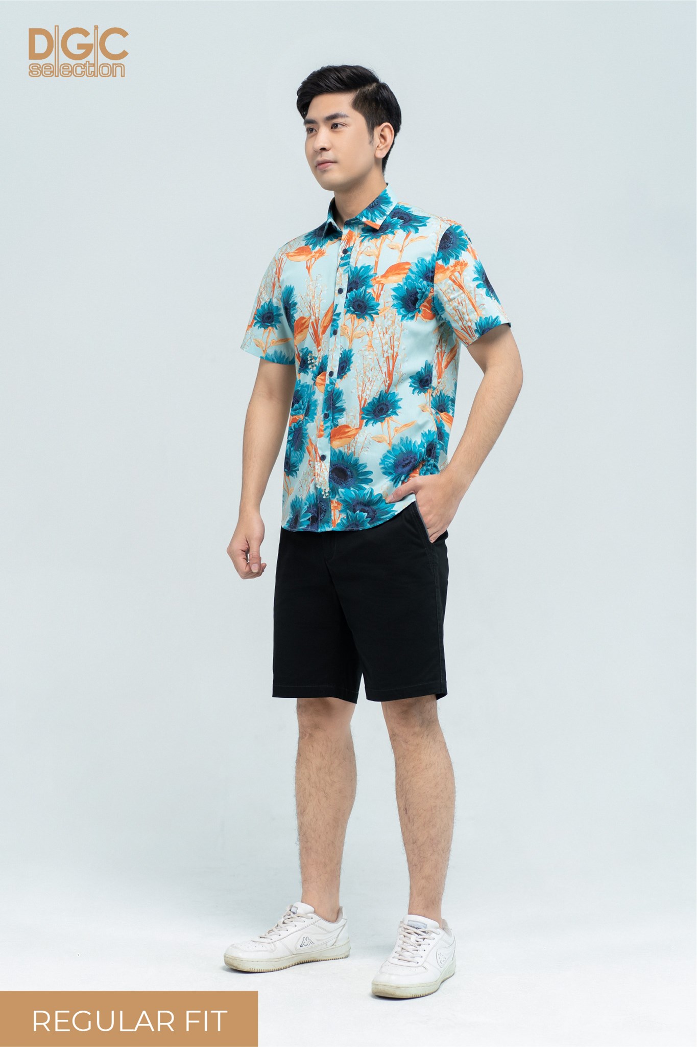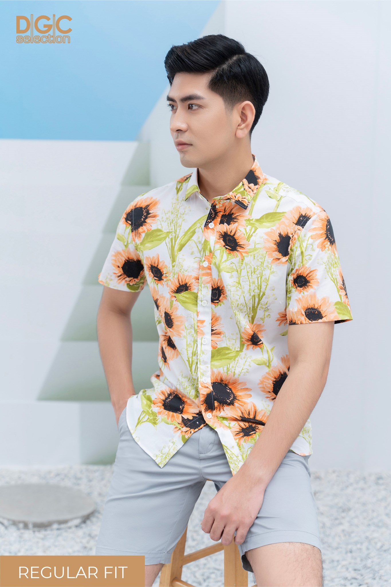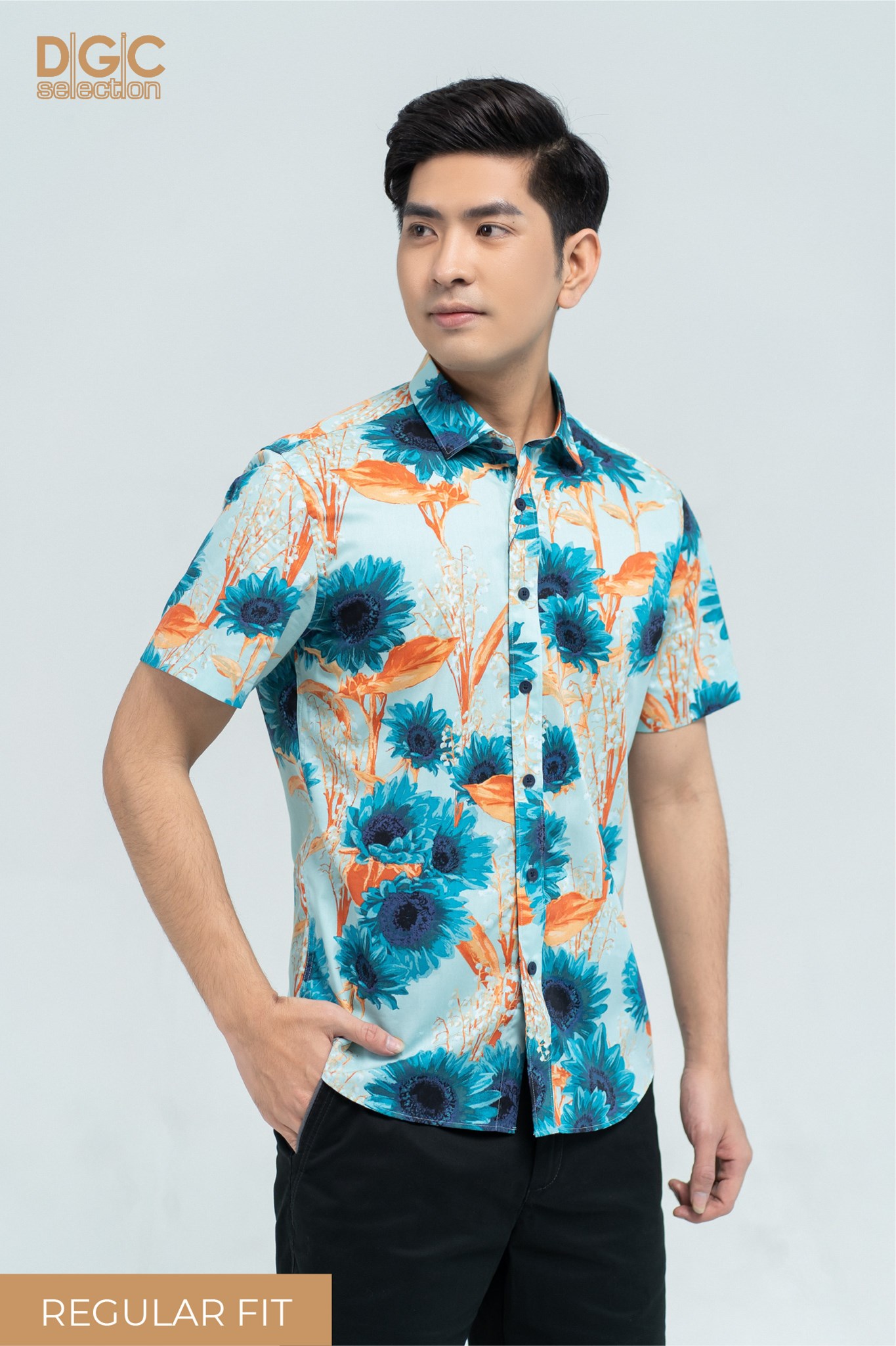 - Kiểu dáng: Sơ mi ngắn tay họa tiết dáng suông, cổ narrow, tay áo suông