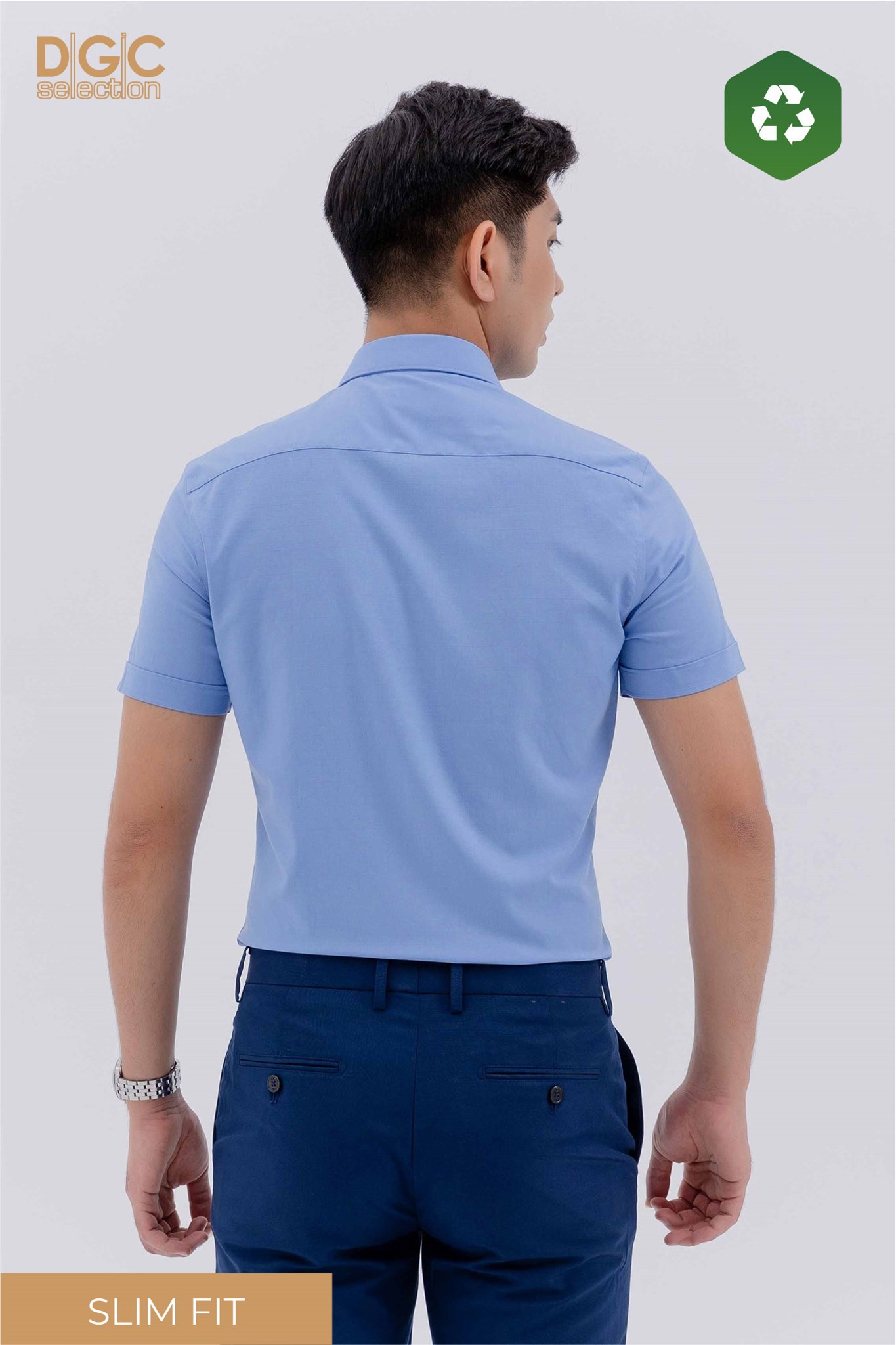 - Kiểu dáng: Sơ mi ngắn tay dáng ôm, cổ Narrow, áo nẹp rời, tay lơ V.