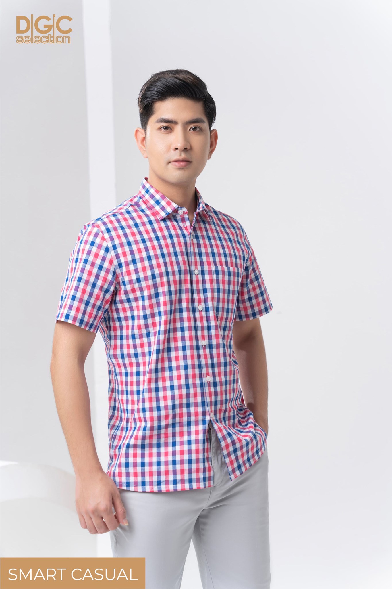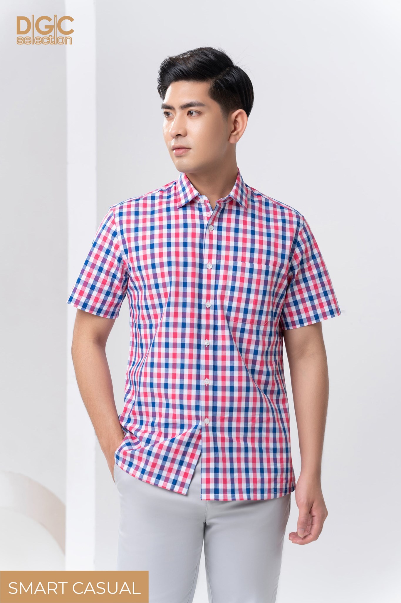 Áo sơ mi ngắn tay thuộc dòng sơ mi SMART CASUAL của DGC. Áo đem đến phong cách thanh lịch và hiện đại. Áo dễ kết hợp với nhiều trang phục khác nhau, thích hợp trong nhiều hoàn cảnh.