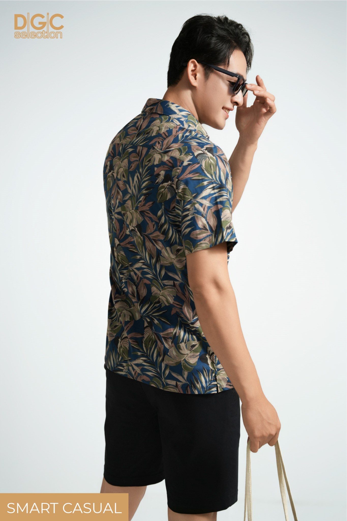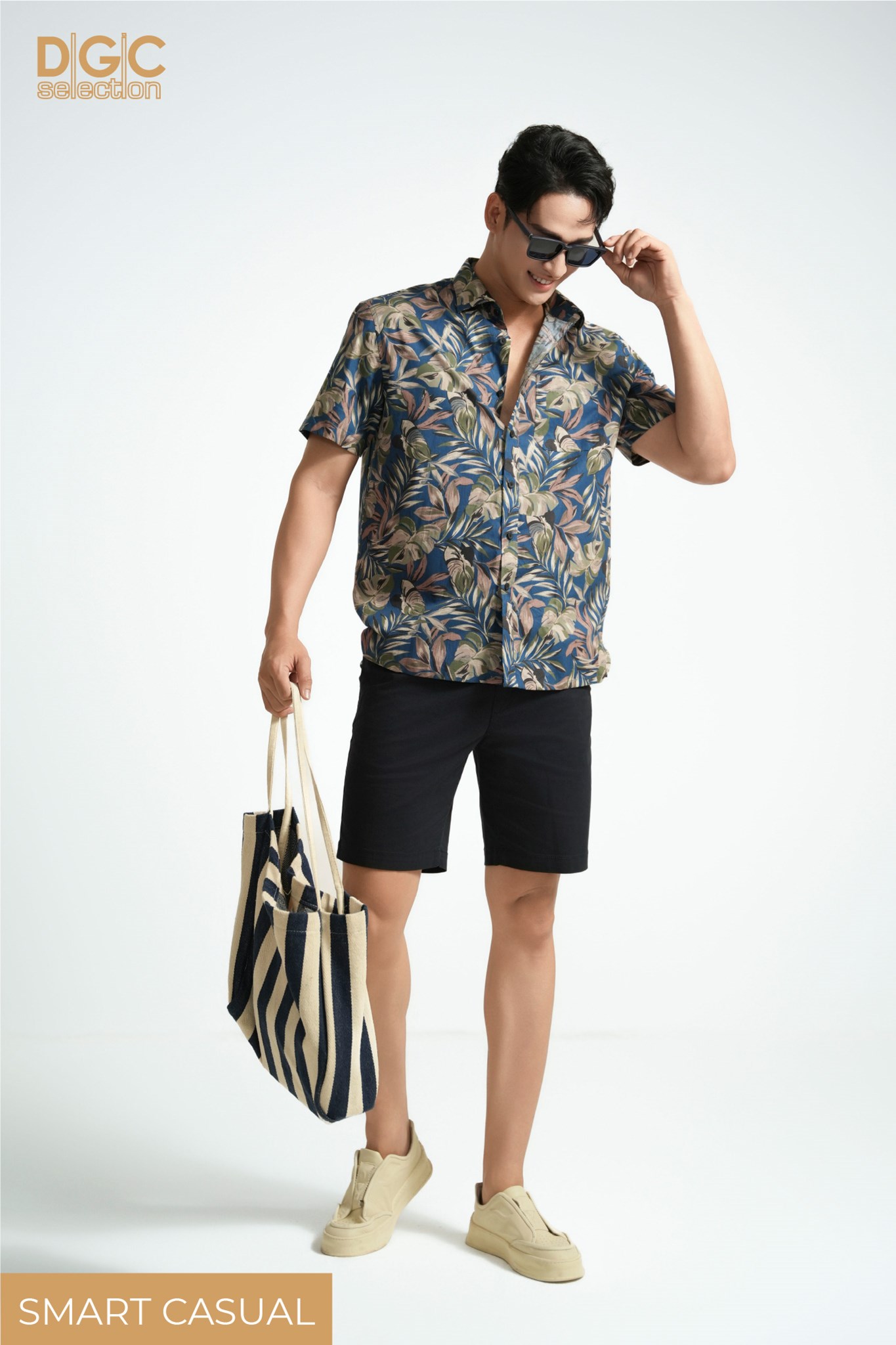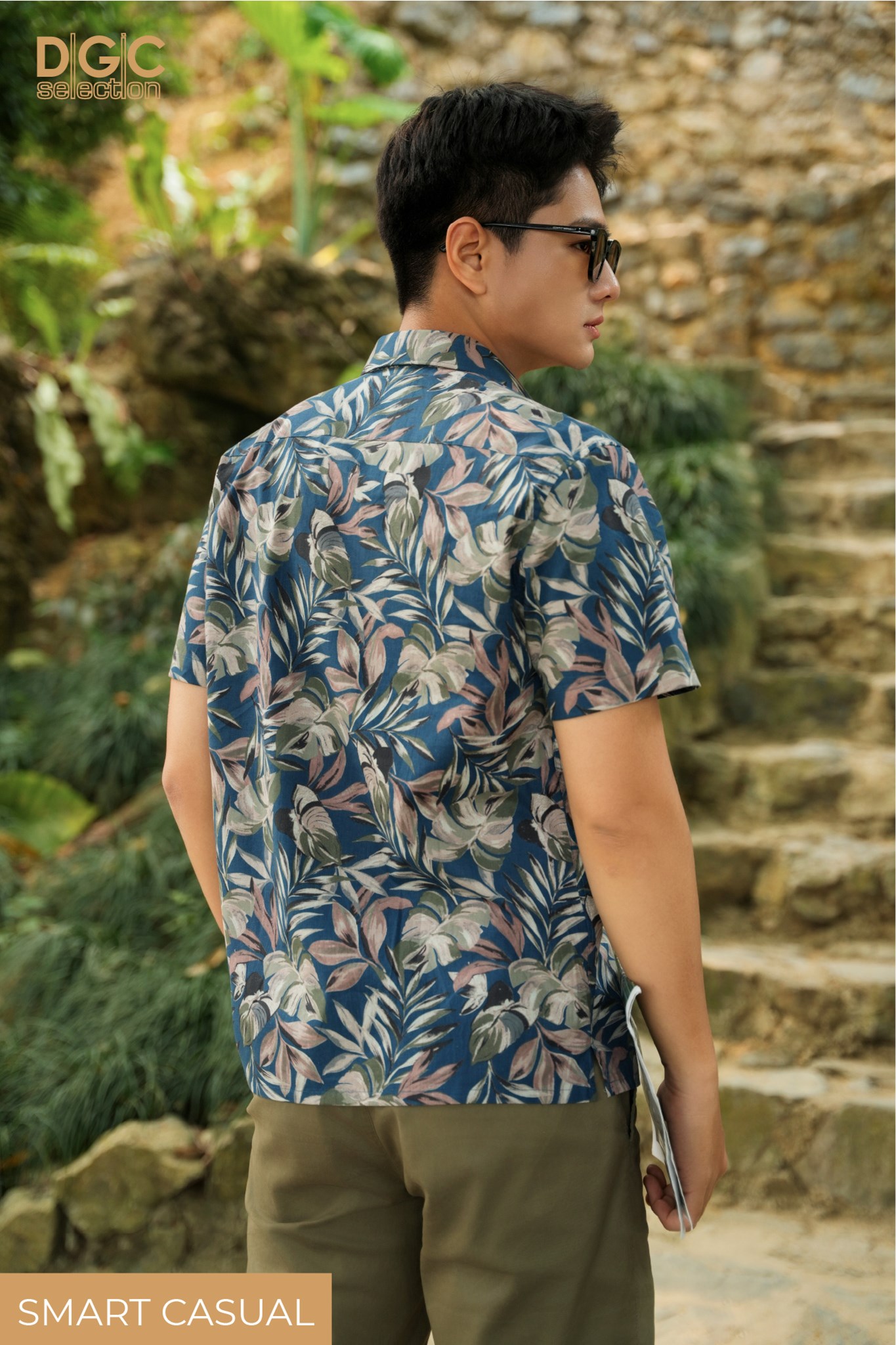 - Kiểu dáng: Sơ mi ngắn tay họa tiết dáng suông vạt bằng, túi ngực trái, tay áo suông, nẹp áo rời