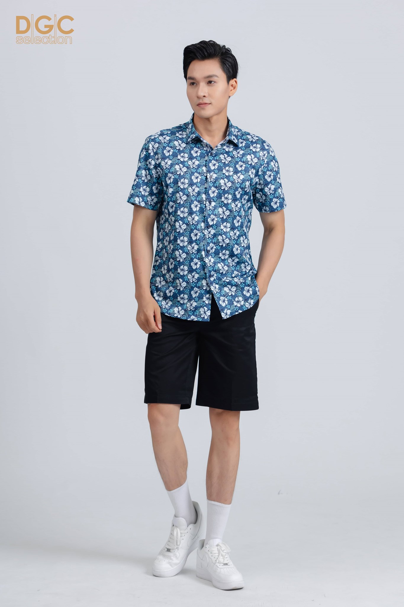 - Kiểu dáng: Sơ mi ngắn tay họa tiết dáng suông, tay áo suông