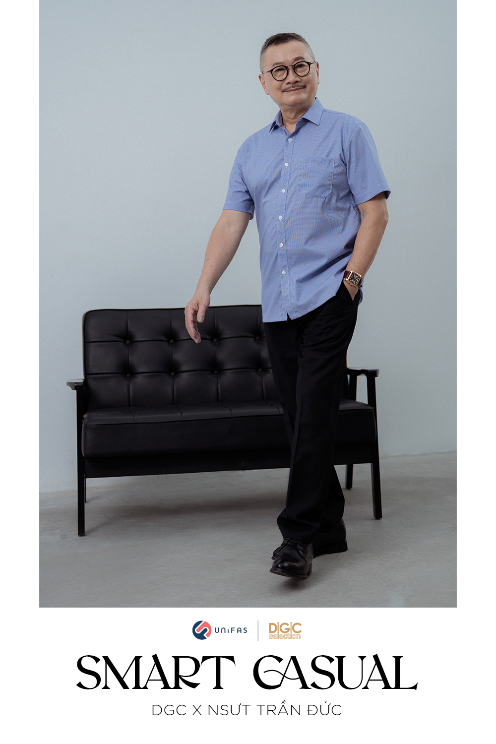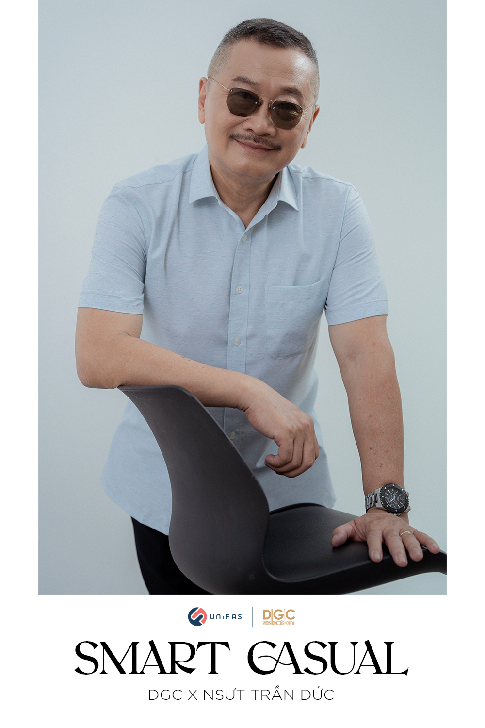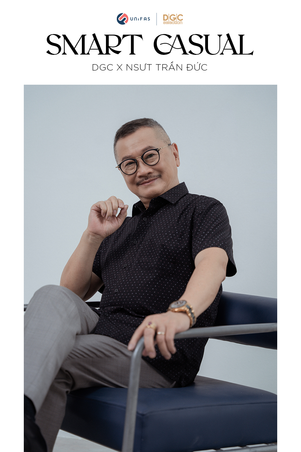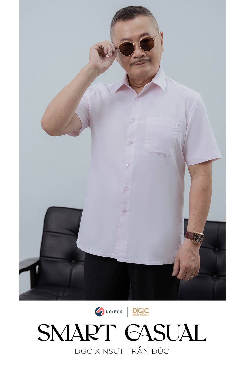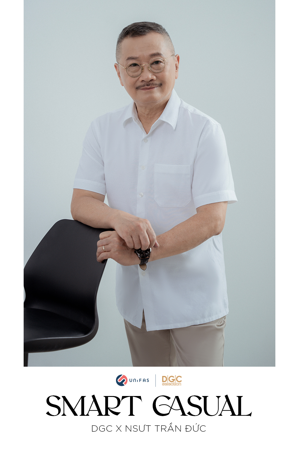DGC vinh dự được hợp tác cùng NSƯT Trần Đức đưa dòng sản phẩm sơmi dành riêng cho người trung tuổi - Smart Casual ra mắt khách hàng qua những hình ảnh lịch lãm, phong độ của người nghệ sĩ quen thuộc.