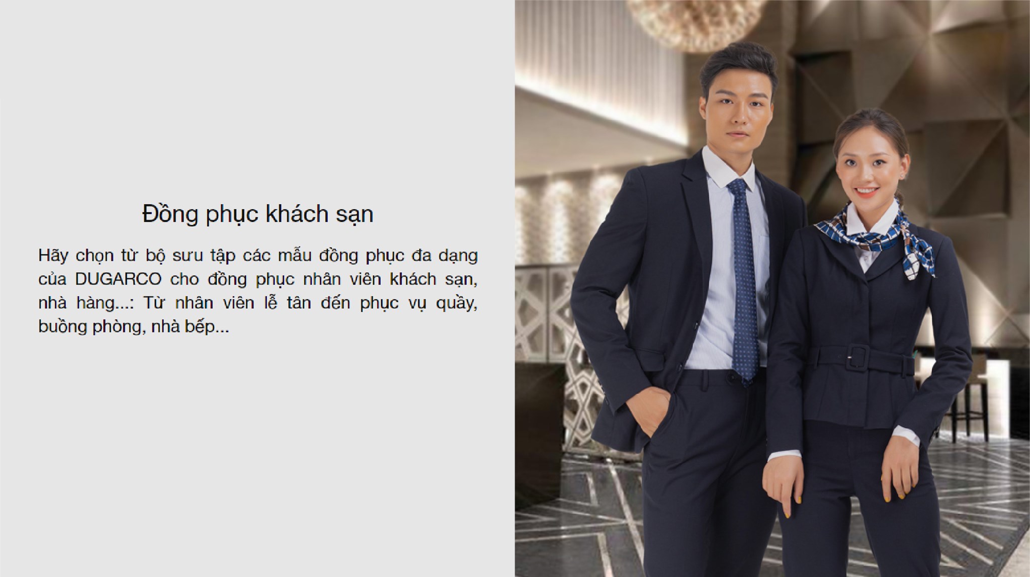 Chúng tôi cung cấp sự lựa chọn đa dạng về chất liệu và kiểu dáng, đảm bảo sự thoải mái và phù hợp với tiêu chí trang phục của từng ngành nghề.