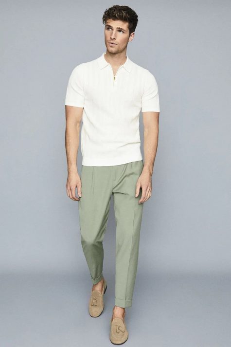 Trên thực tế, áo polo hoàn toàn phù hợp nếu bạn muốn mặc item này trong các dịp cuối tuần. Chất liệu pique cotton là sự lựa chọn tuyệt vời cho trang phục nghỉ dưỡng, tuy nhiên bạn hoàn toàn có thể thử nghiệm chất liệu dệt kim. Cổ áo có khóa kéo cũng rất tuyệt để khiến trang phục thêm thú vị. Với quần, hãy nghĩ đến quần xếp ly hoặc quần chinos. Đối với giày dép? Loafers hay boat shoes luôn là ứng cử viên tuyệt vời cho ngày Hè.