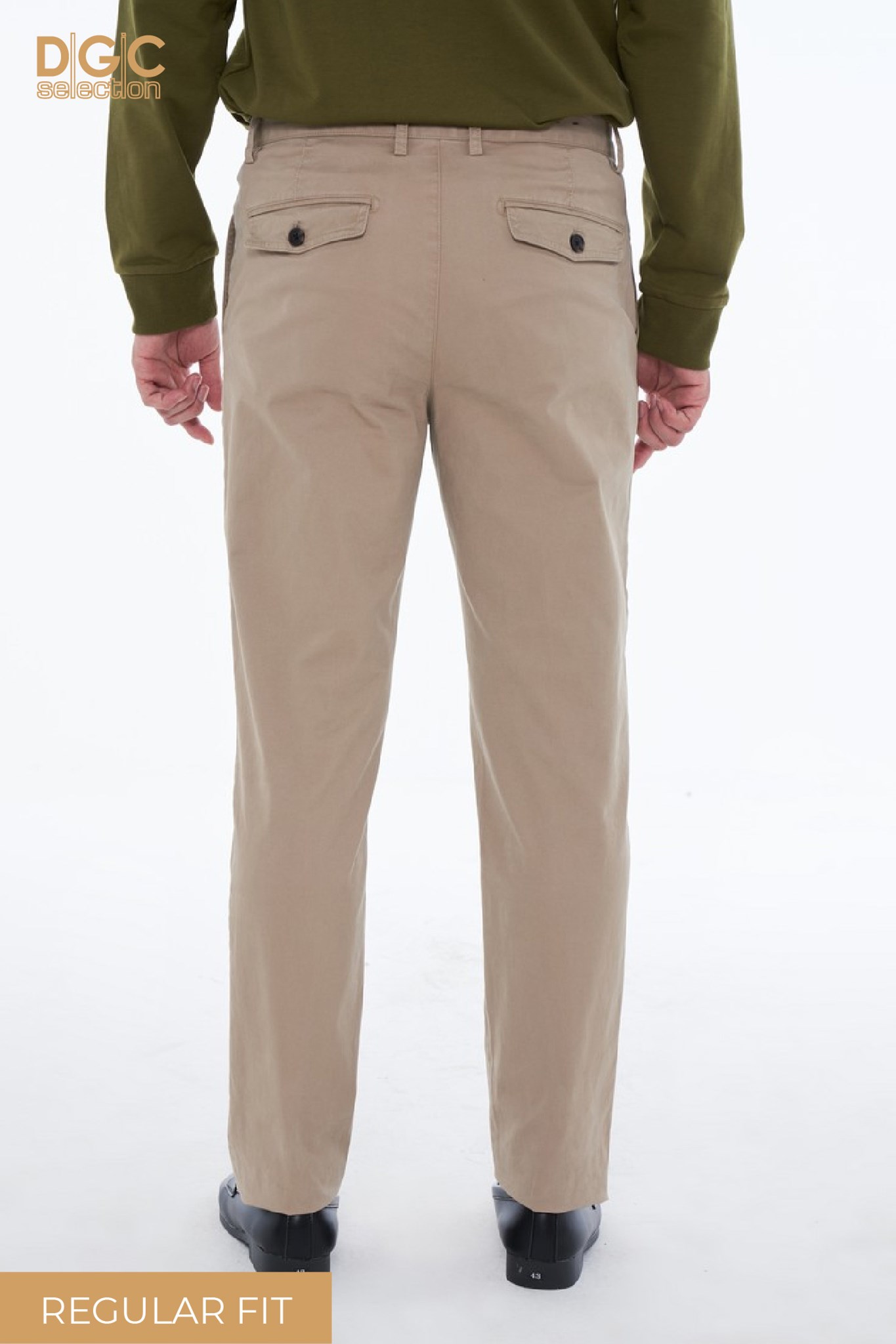 - Kiểu dáng: Quần khaki không ly, dáng suông nhẹ, cạp quai nhê, túi hậu có nắp túi