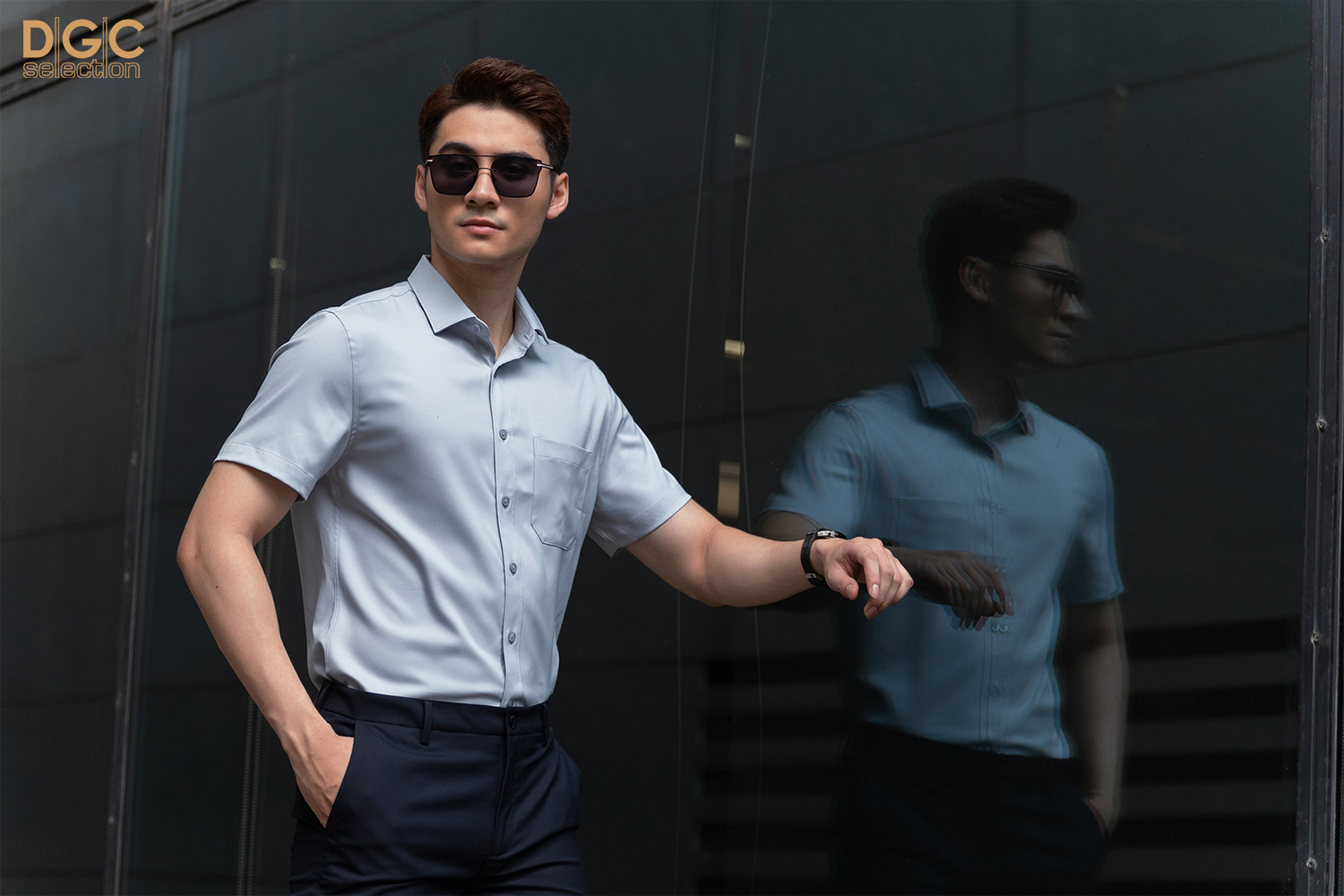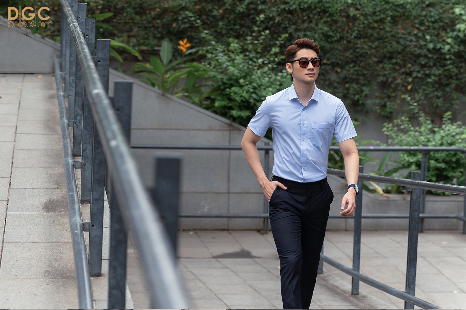 Áo sơmi công sở màu xanh dịu mát và thanh lịch