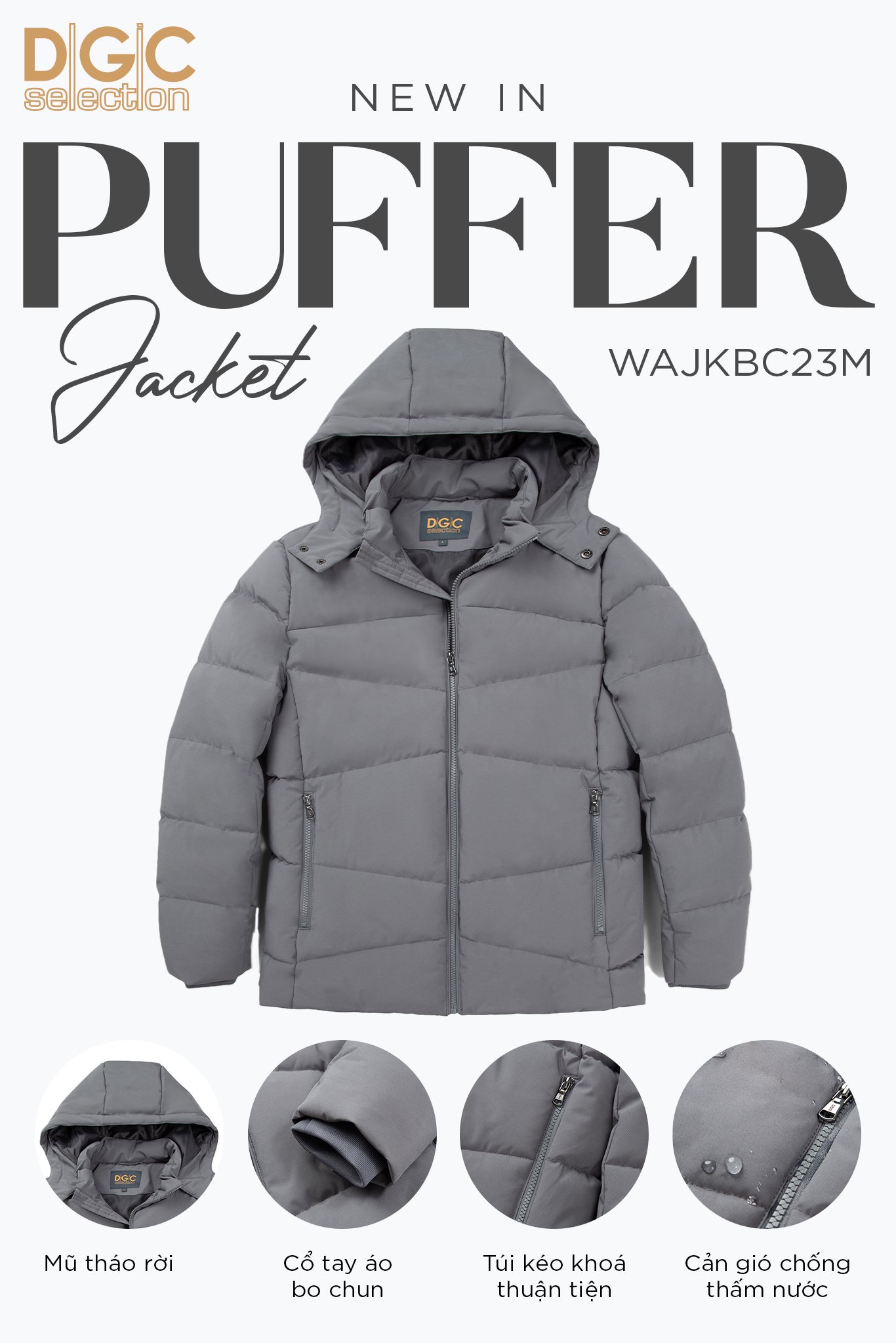 Tại DGC, 100% áo khoác đều được sản xuất bằng chất liệu Recycled Polyester. Đây là chất liệu được sản xuất từ nguồn nguyên liệu nhựa được xem là rác thải không còn giá trị sử dụng, tuy nhiên thay vì thải ra môi trường và trải qua quá trình hằng trăm năm để phân hủy thì các vật liệu nhựa này được tái chế kéo thành sợi và dệt vải tái chế ta tạo ra sản phẩm có tính chất tương tự như sợi truyền thống nhưng lại thân thiện môi trường và tiết kiệm nguồn tài nguyên hơn.